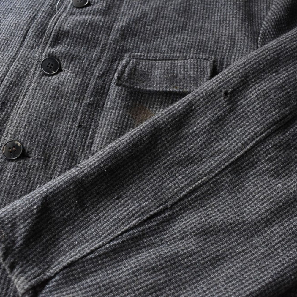 当時の労働者が日々の暮らしの中で、破れた箇所を縫い、継ぎ、また使い続けてきた跡。そこには直すことを前提とした服づくりと、モノを大切にする精神が息づいています。