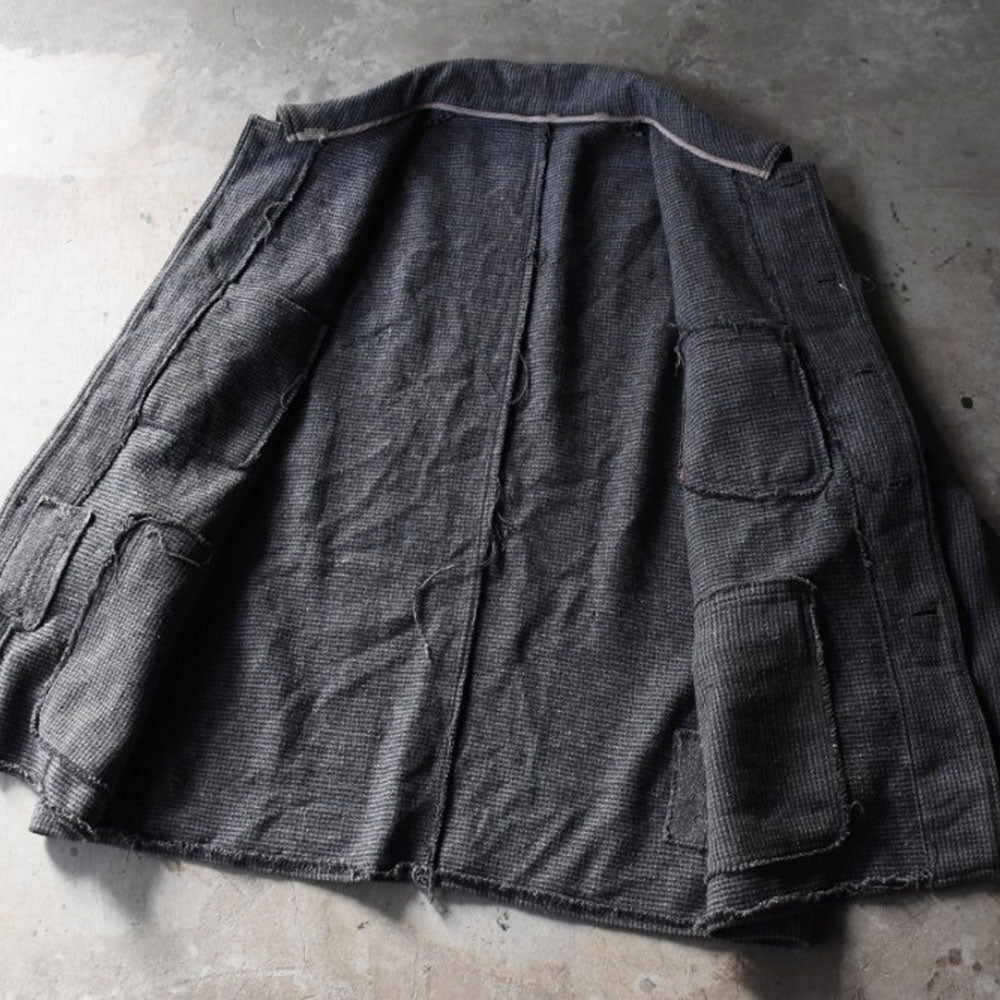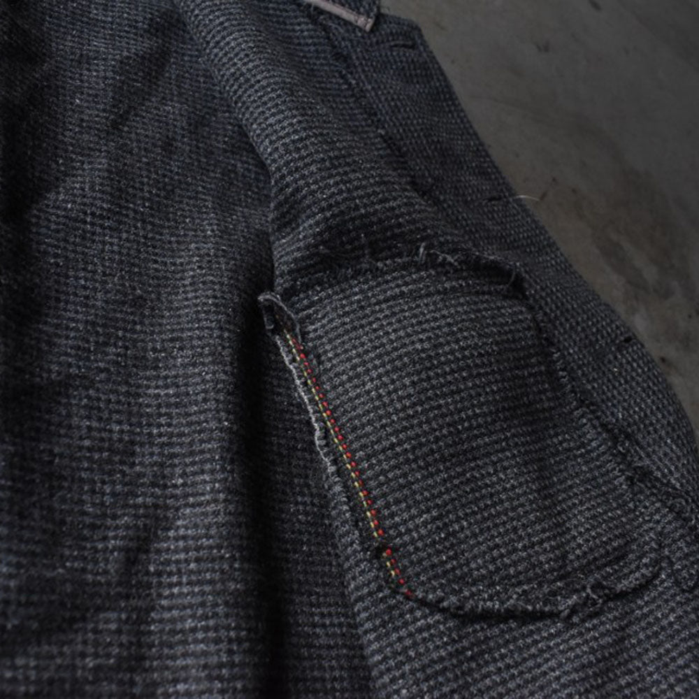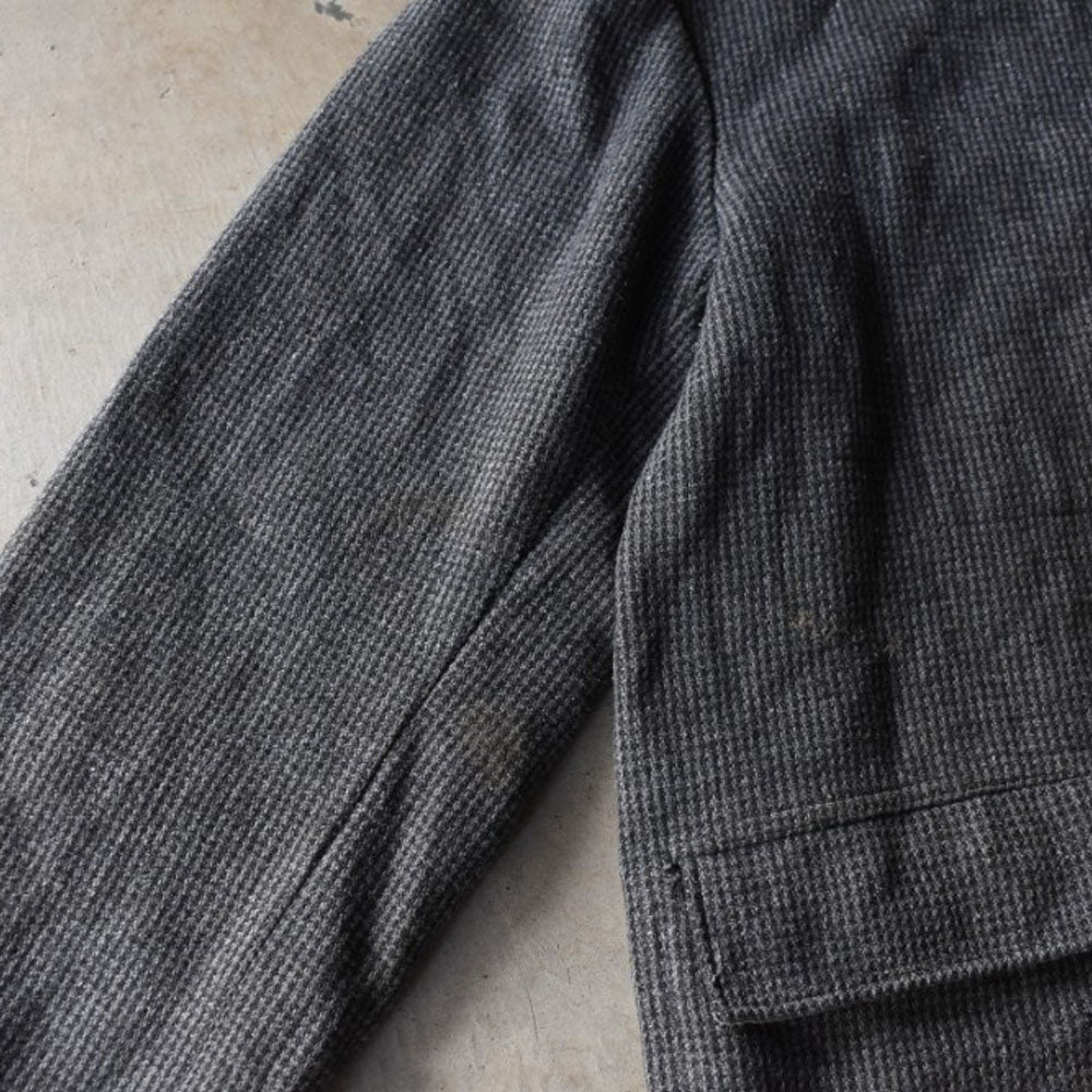 ウール×リネン混と思われる重厚な生地に、細かな千鳥格子のような織り柄。