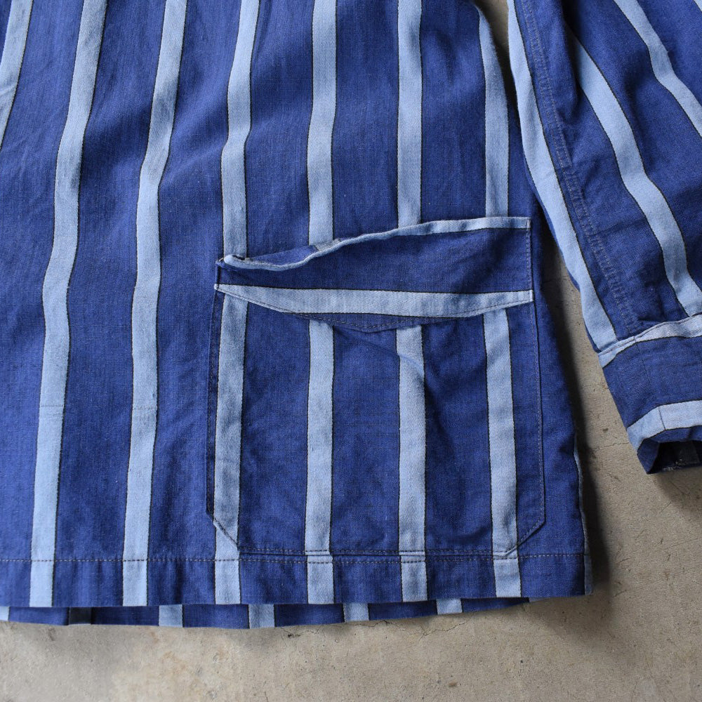 ブルーとサックスブルーのストライプが絶妙に褪せ、ユーズドデニムのような深みを帯びた一枚。