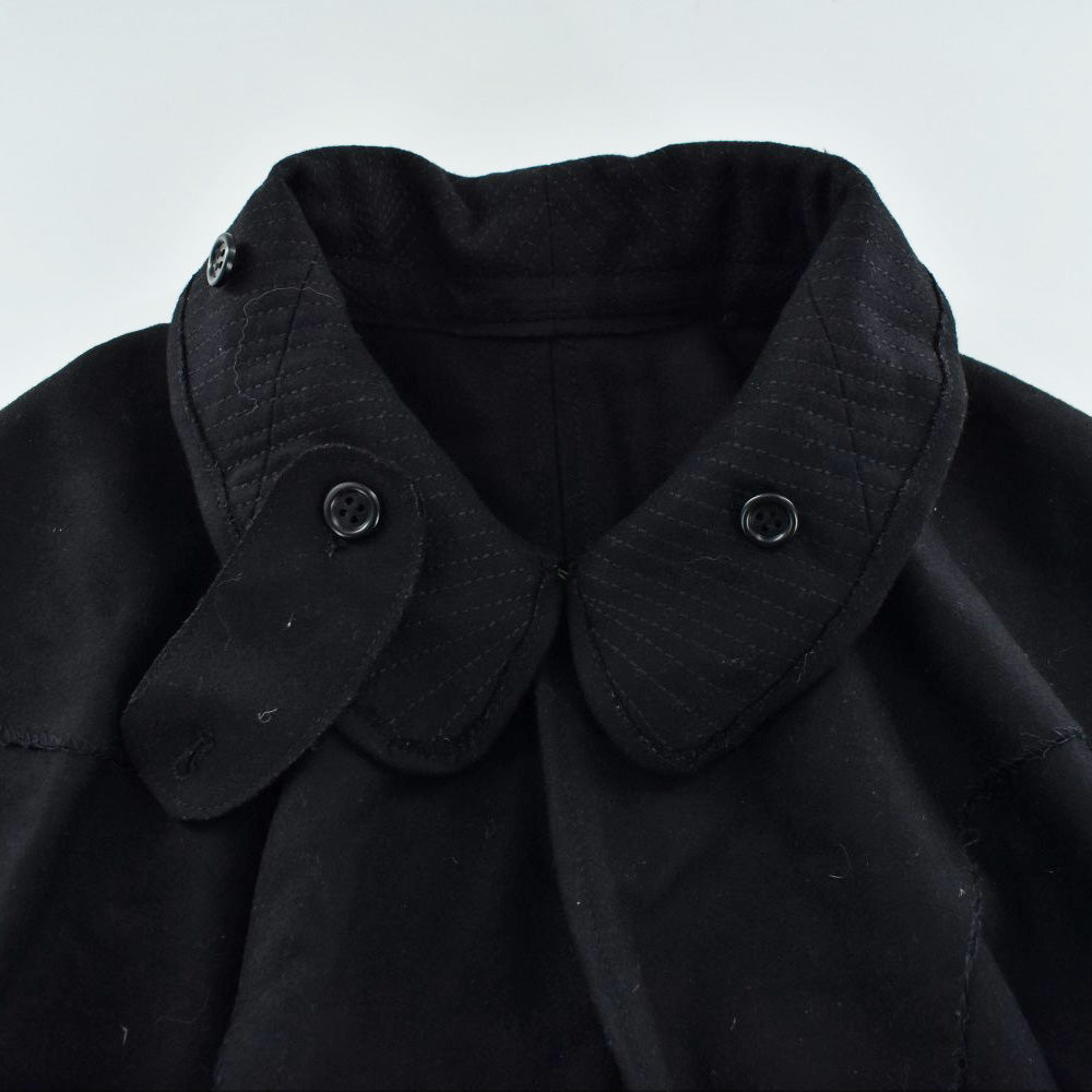 深く、重厚な黒のメルトンウールは、現代では再現困難なほどの密度を誇り、冷徹なまでの静寂を湛えています。