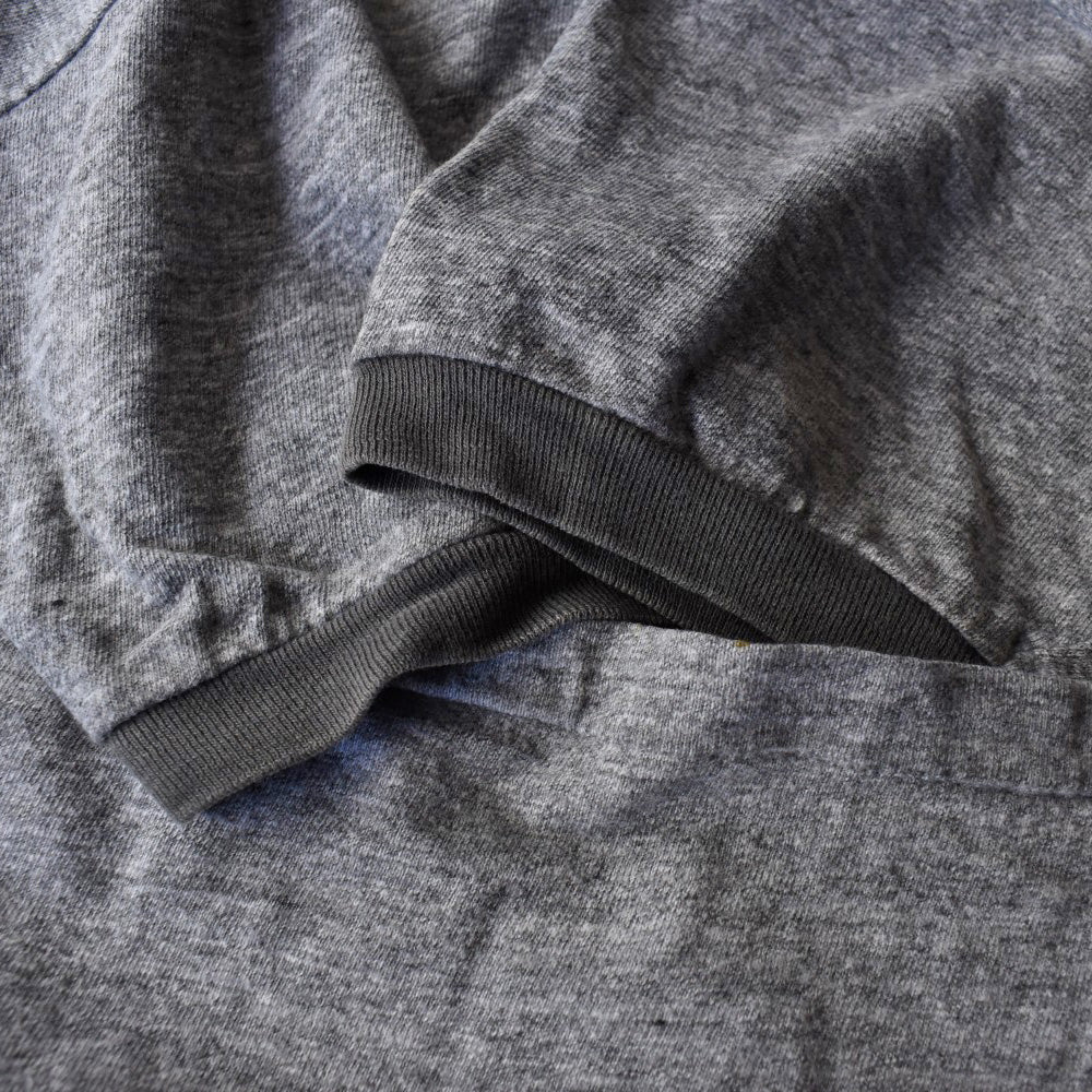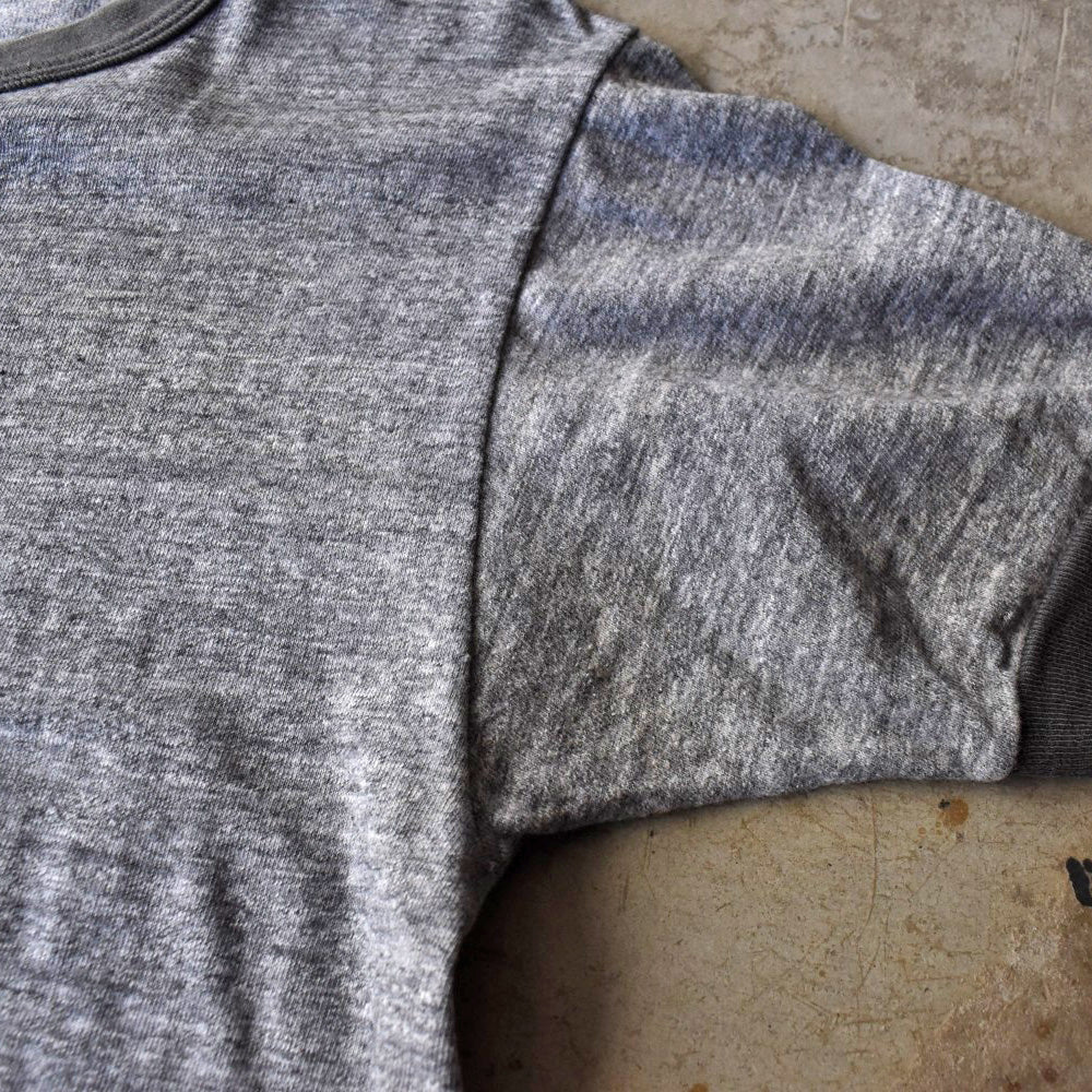 首リブや袖口のリンガー部分も、極端なヨレはなく、バランスがいい。生地全体に細かなネップ感があり、70年代特有の空気をちゃんと残しています。