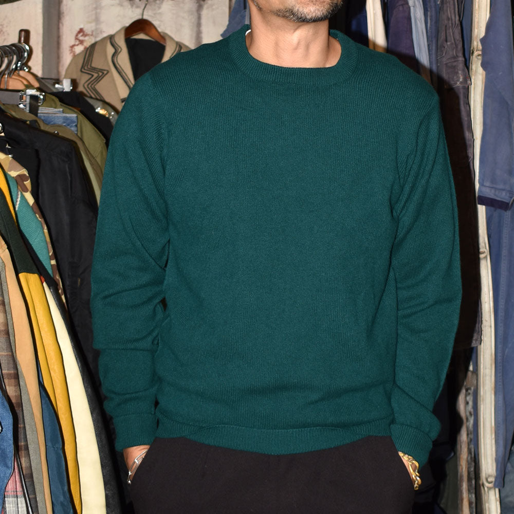 深いグリーンのトーンは、ブリティッシュトラッドやモッズ、ブリットポップといったUKカルチャーの文脈にも自然に馴染む色。ツイードジャケットのインナーとしても、デニムと合わせたカジュアルスタイルにも映える万能な一枚です。