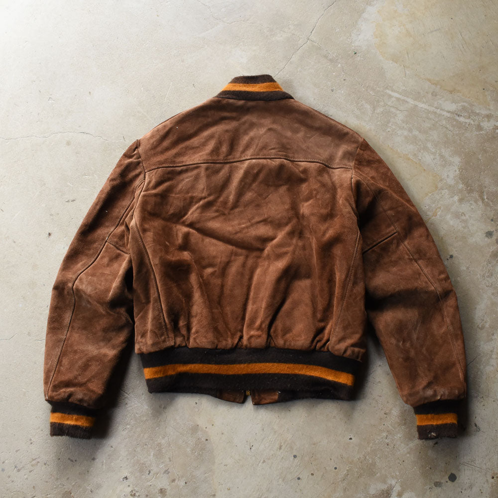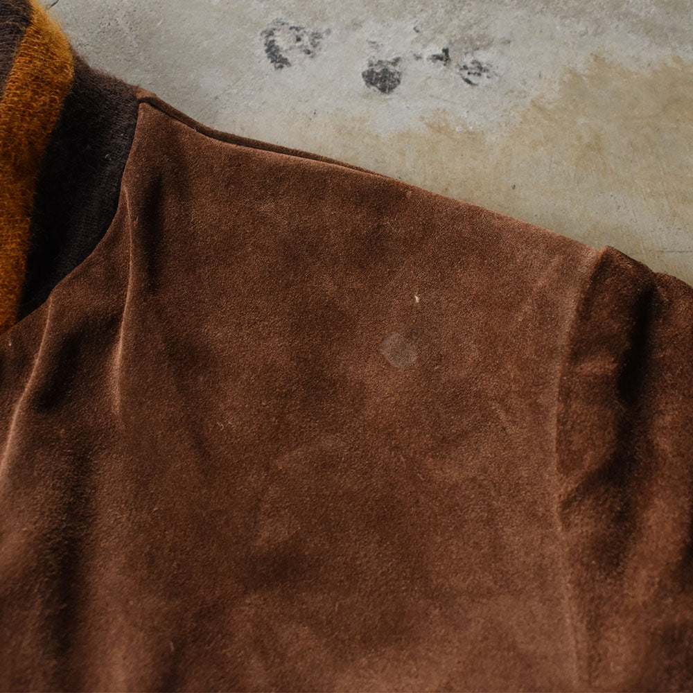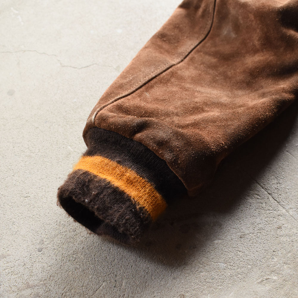 肉厚で柔らかなスエードレザーに、オレンジ×ブラウンのリブラインが映えるクラシックな一着です。