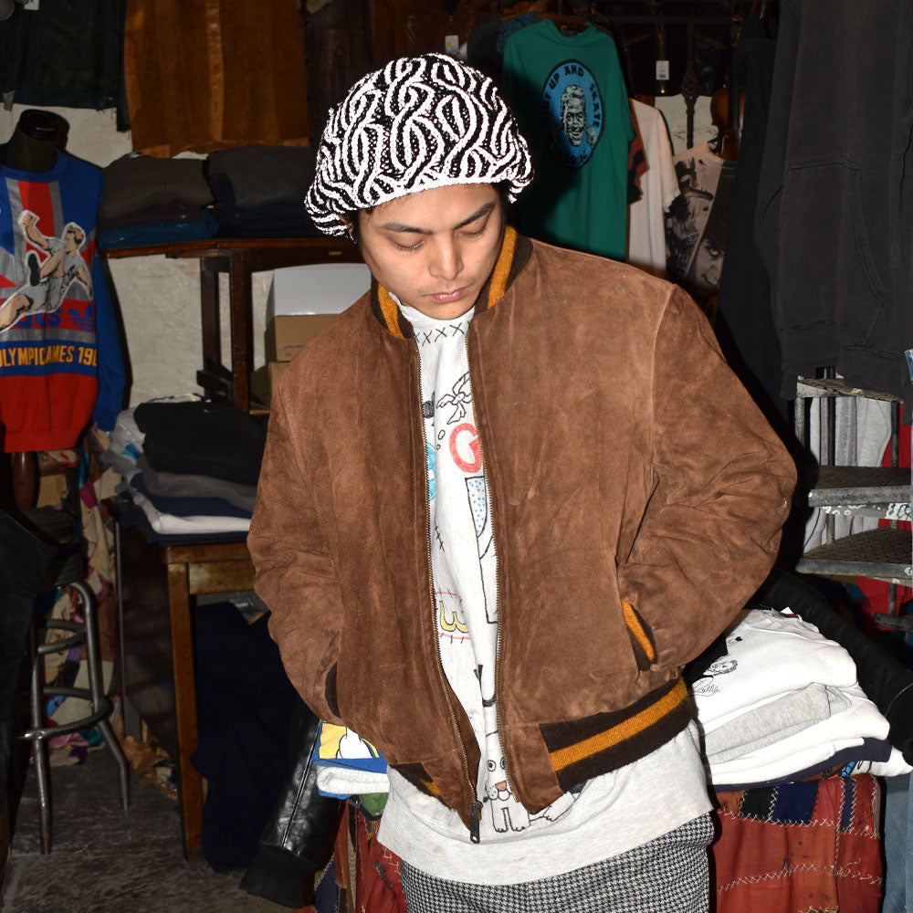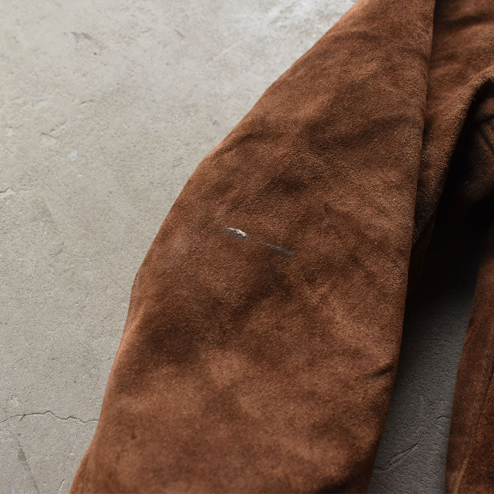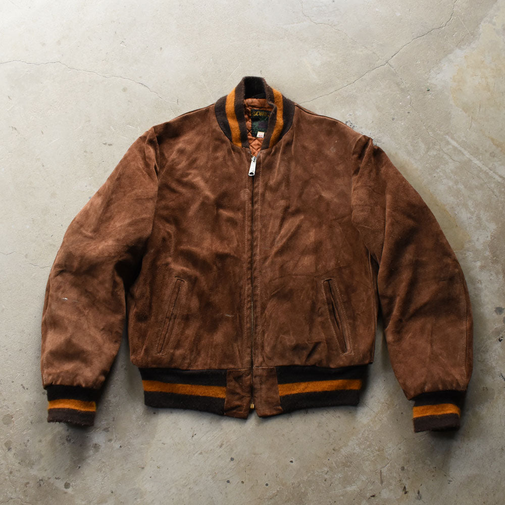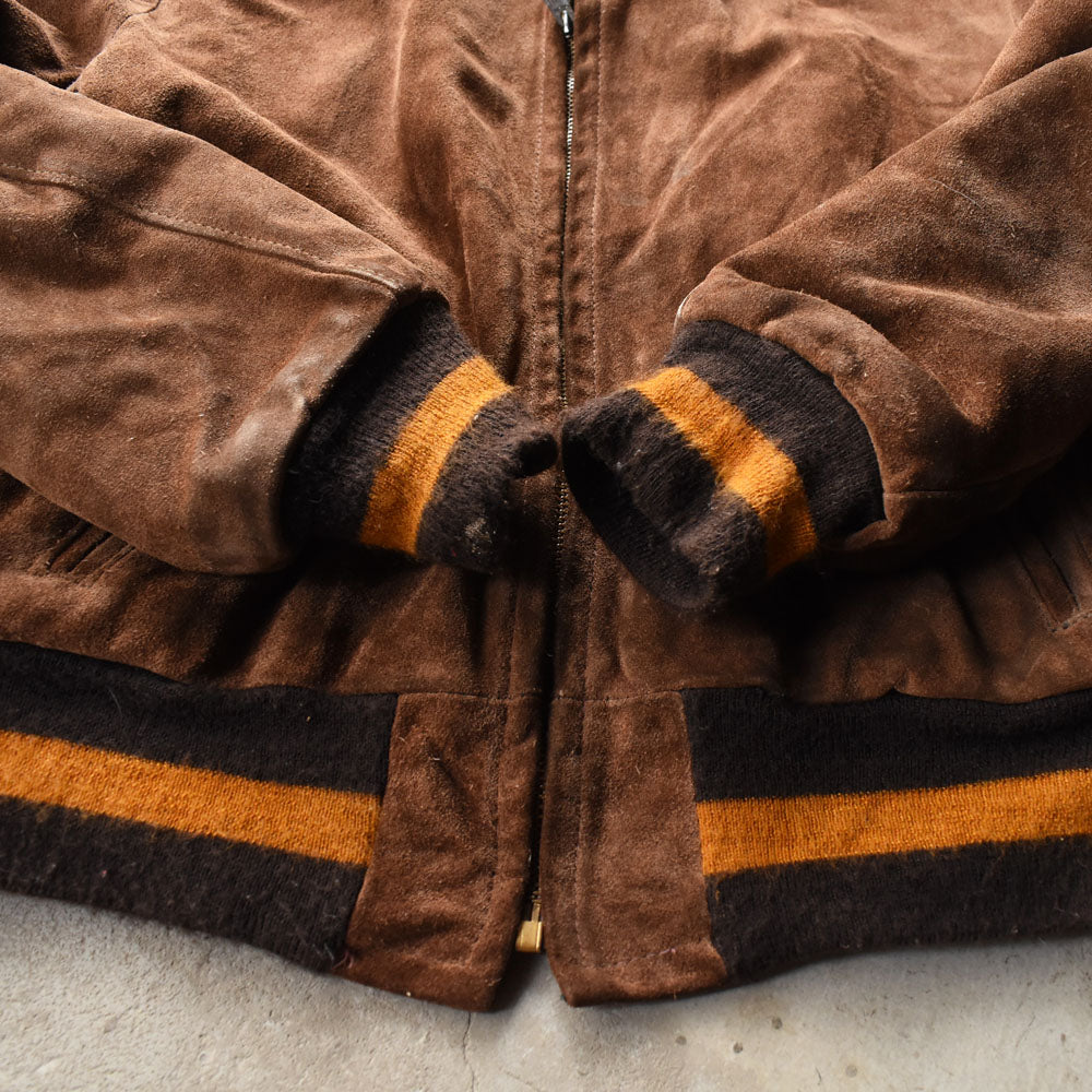 肉厚で柔らかなスエードレザーに、オレンジ×ブラウンのリブラインが映えるクラシックな一着です。