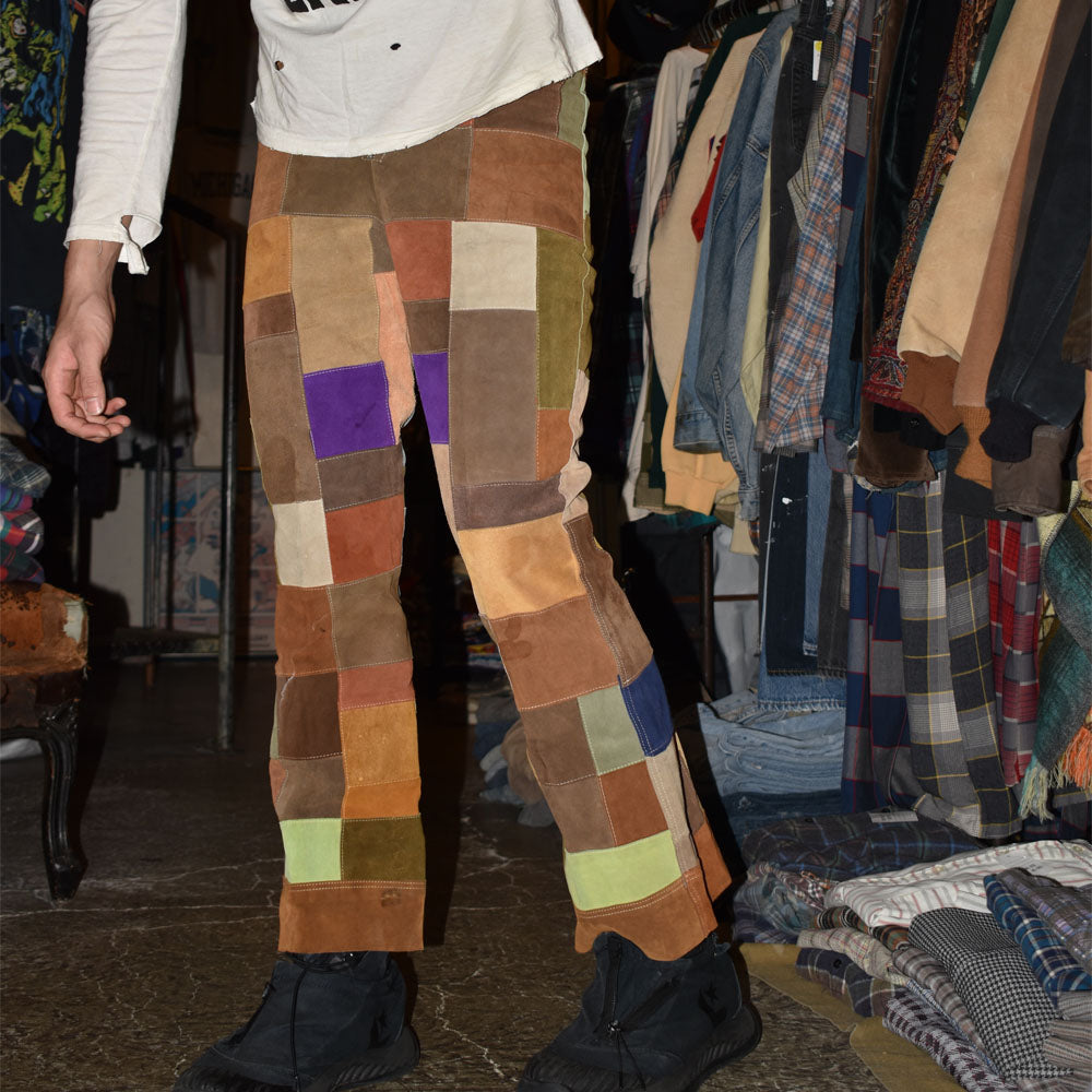 70’s スウェード パッチワーク フレアパンツ 251014H