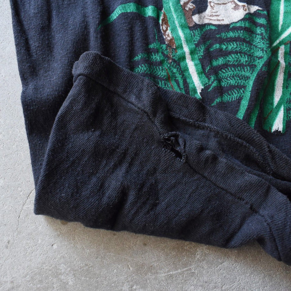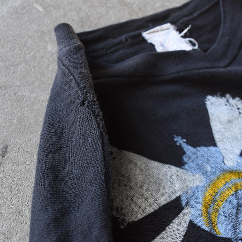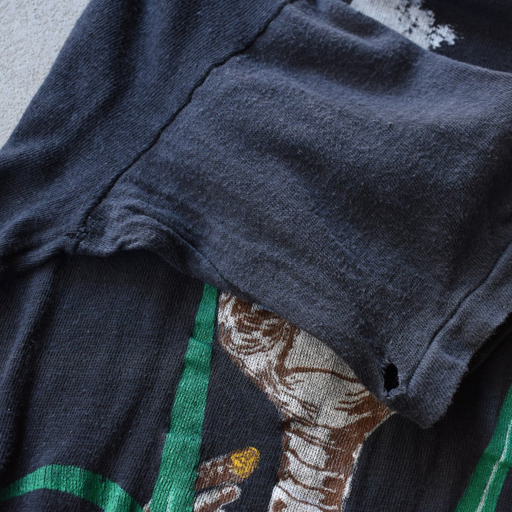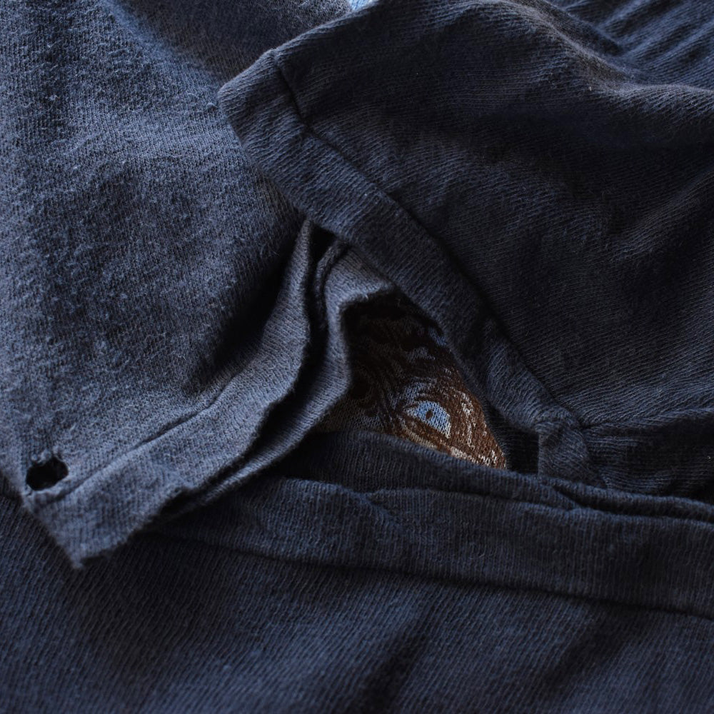 袖やボディに点々とある小さなダメージも、雰囲気を壊すものではなく、このTシャツが愛され、ちゃんと日常で着られてきた証拠だと思います。