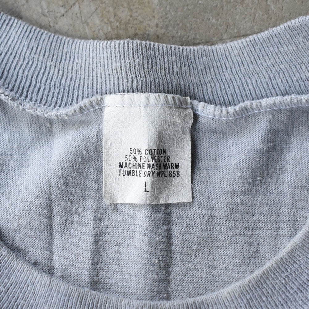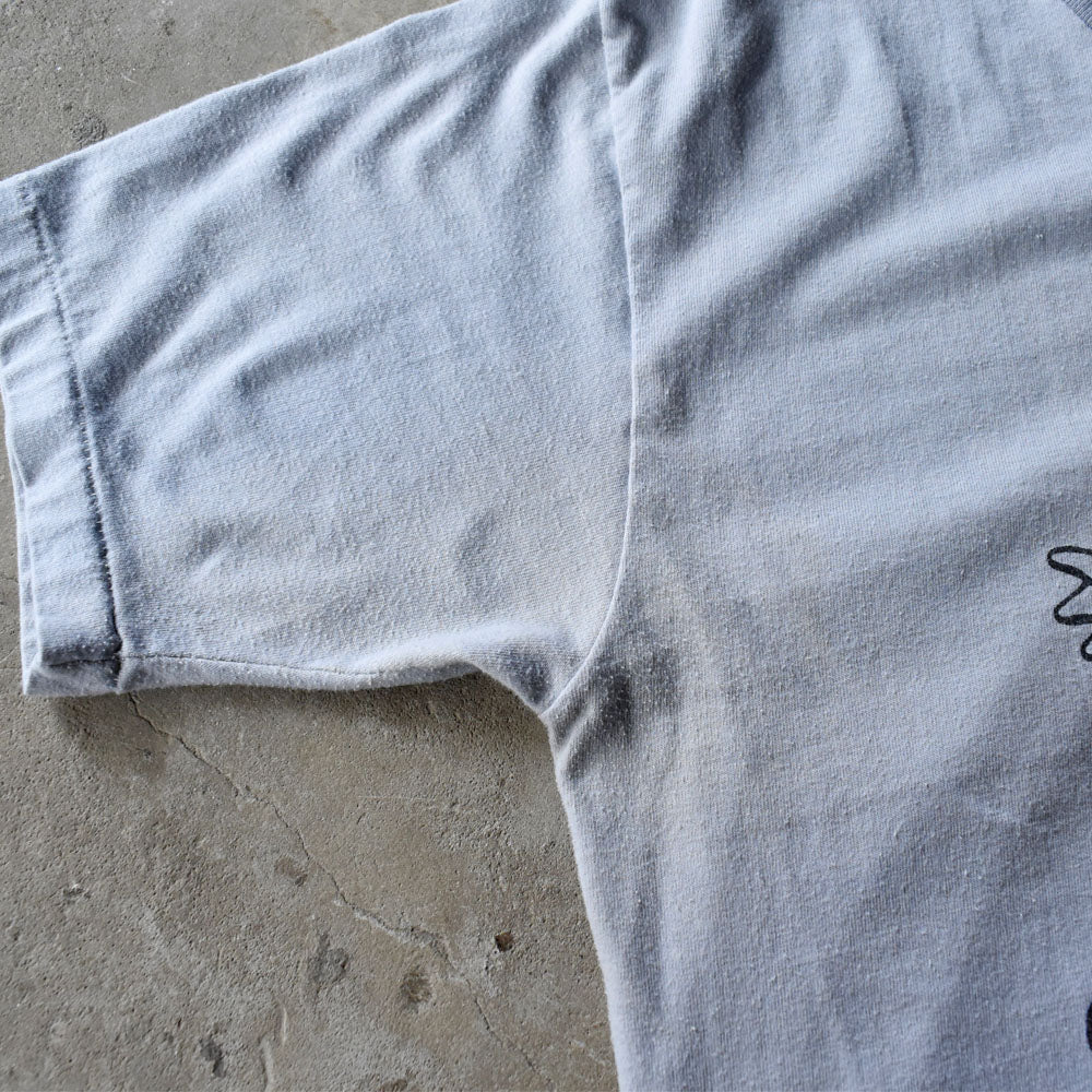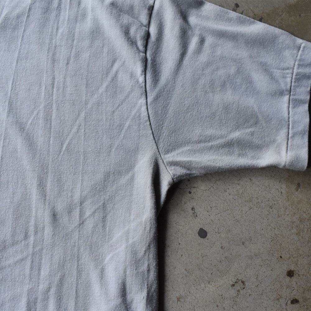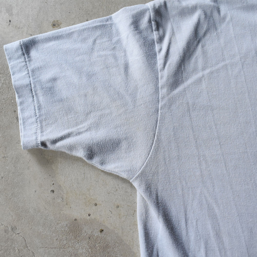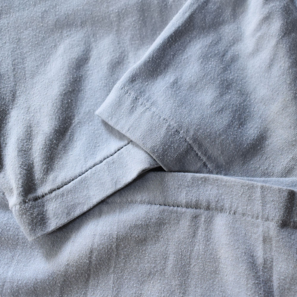 柔らかい着心地と軽さが特徴で、袖裾はシングルステッチ仕様。経年によるフェード感が加わり、ロゴの赤と黒がヴィンテージらしい深みを持って残っています。
