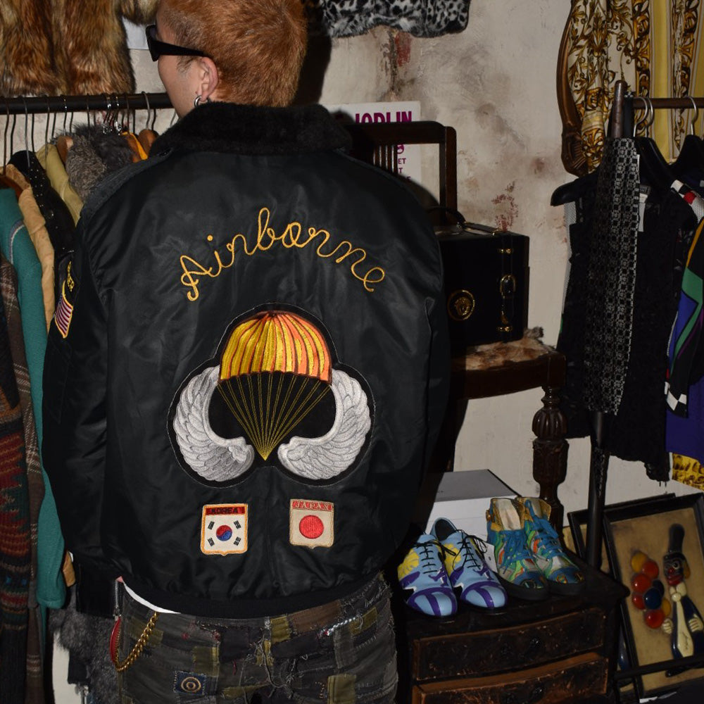色の強めな糸でAirborneのウィングを縫っていたり。