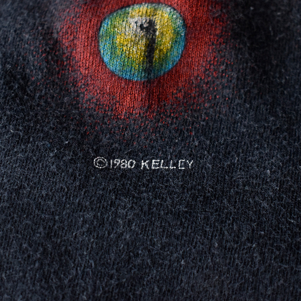 note...USロックバンド、Journey。80年にリリースされた“Departure”のジャケットカバーTシャツ。グラフィックを手掛けたのはサイケデリックアートの伝説的アーティスト、アルトン・ケリーとスタンリー•マウスの共作。フロントに独特で美しいアートワークがプリント。タグはヘインズのM表記。USA製。袖、裾シングルステッチ。80年Alton Kelleyコピーライト入り。音楽とアートが融合した、Journeyらしい世界観のヴィンテージ・ロックTシャツです。