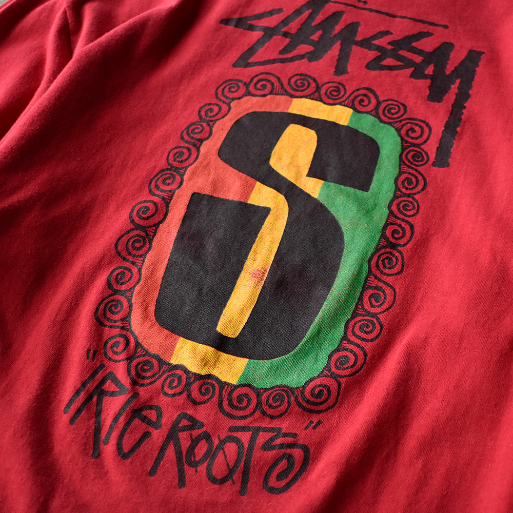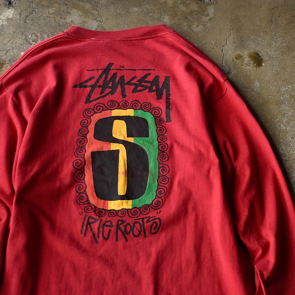 80's Old STUSSY 黒タグ “IRIE ROOTS“ Rasta S Logo ロングスリーブTシャツ USA製 250714H