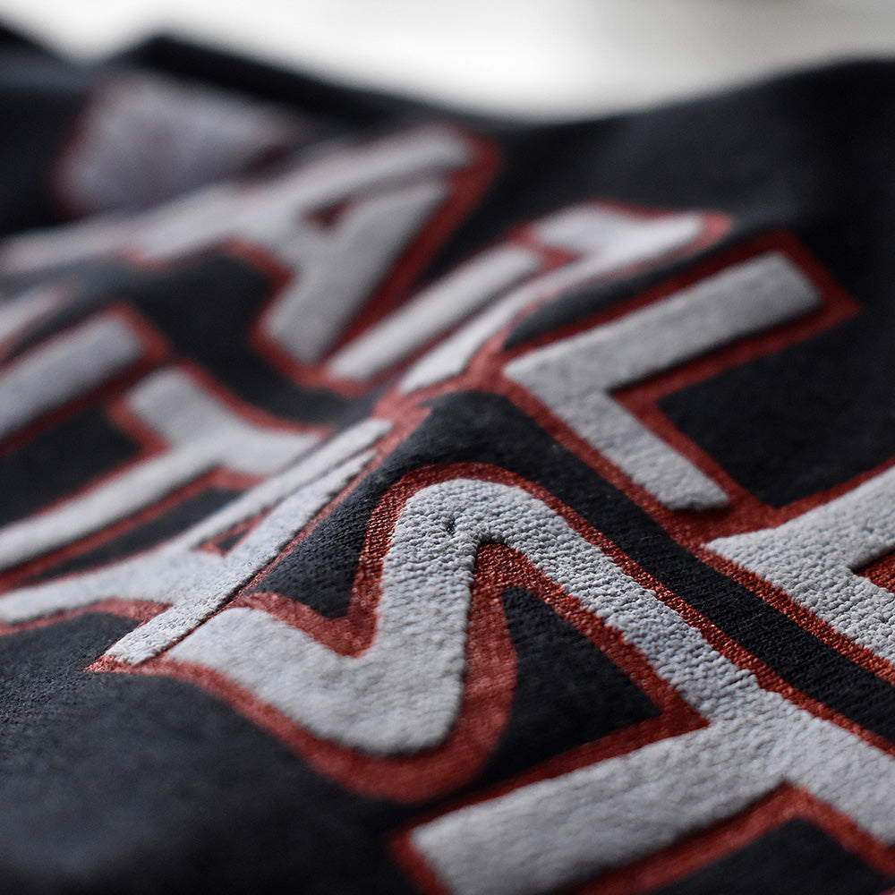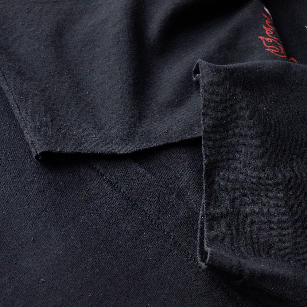 note...80年代初頭に活動したイギリスのポップバンド、Scarlet Fantastic。87年リリース1stシングル“No Memory” Tシャツ。フロントにはウィングとスターを組み合わせた存在感抜群かつ洒落たデザイン。さらに袖にはシングルの裏ジャケットで使われた女性のロゴがさりげなくプリントされています。立体感のあるフロッキープリント、バックに入るメッセージなど雰囲気のある1枚。タグはスクリーンスターズの黒タグ。XL表記。古着市場でも中々出回る事のないレアなScarlet Fantastic Tシャツです。