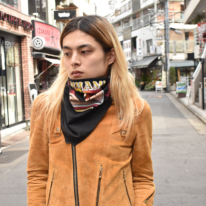 note...1984年、ジョージ・マイケルとアンドリュー・リッジリーによるイギリスのポップデュオ、WHAM!がリリースしたセカンドアルバム『MAKE IT BIG』は、世界中で爆発的なヒットを記録し、80年代ポップシーンを象徴する存在となりました。そのアルバムの成功を背景に、当時制作されたと考えられるヴィンテージバンダナです。