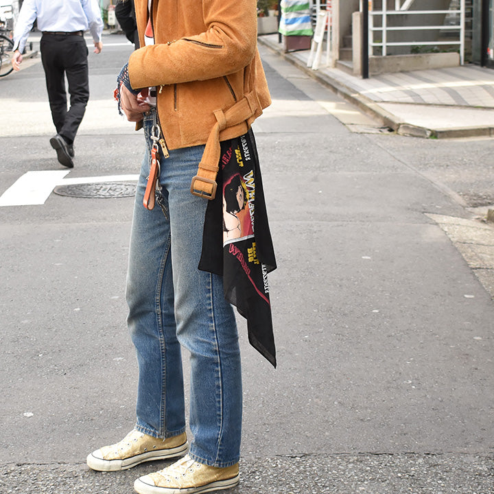 デイリーユースはもちろん、腰に巻いたりヘッドバンドとして使ったりと、Y2Kリバイバルのムードを取り入れたスタイリングにもぴったりです。ヴィンテージ市場でもなかなか見かけない希少なアイテムなので、WHAM!や80sカルチャーに惹かれる方はぜひこの機会をお見逃しなく。