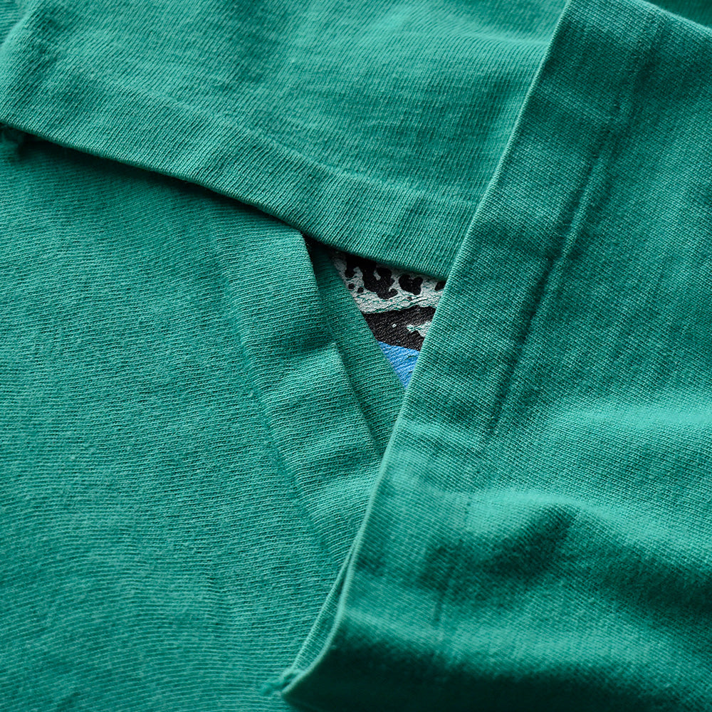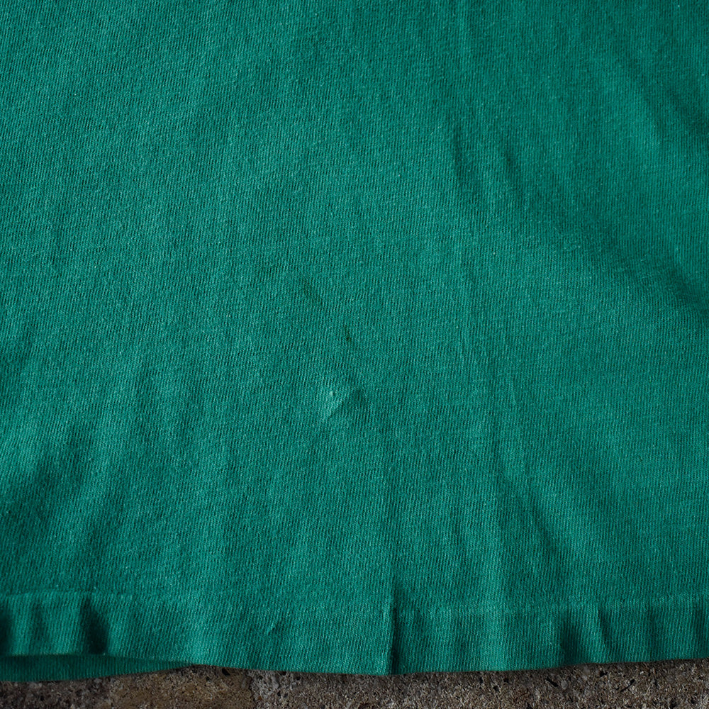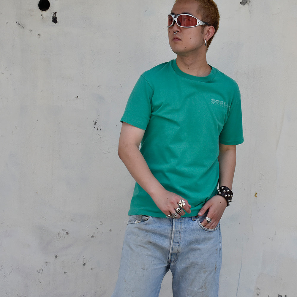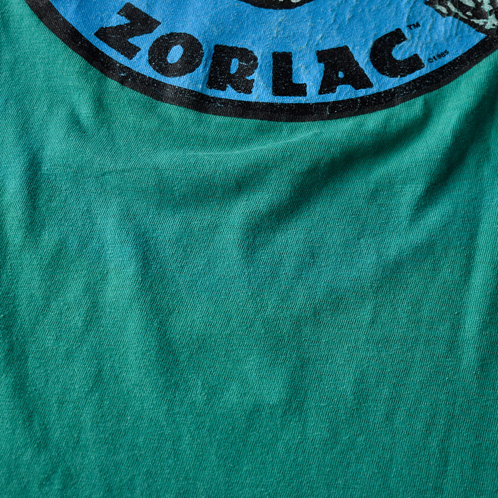 note...アメリカ・カリフォルニアの伝説的スケートボードブランド、Zorlac Skateboards。ブランドの代表作ともいえる“Shut Up and Skate“グラフィックTシャツ。グリーンボディにスカイブルーのプリントカラー。胸元にはZorlacロゴ。85年コピーライト入り。袖、裾シングルステッチ。希少価値も高く、市場に出回ることのないヴィンテージ、Shut Up and Skate Tシャツ。コレクターズピースのスペシャルな1枚です。