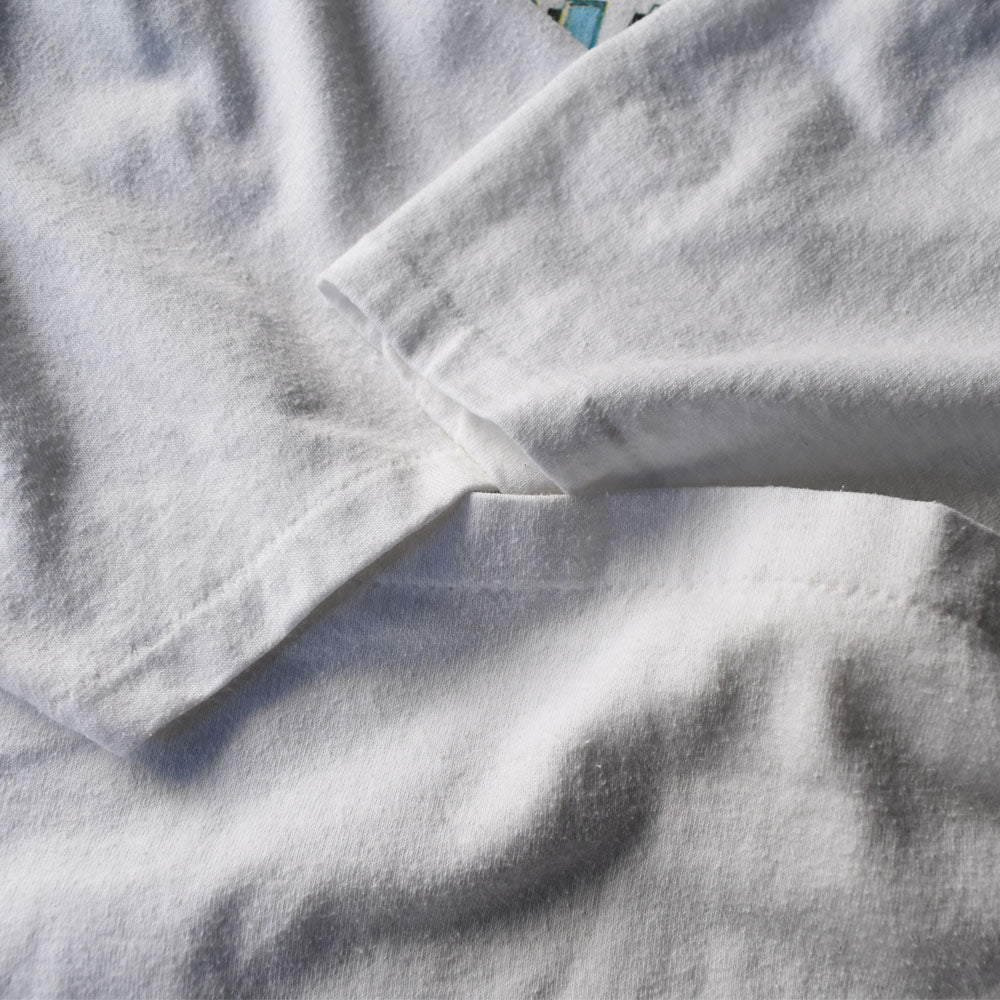 note...インディアナポリス500のオフィシャルTシャツ。“74th 500 Mile Race”の開催記念アニバーサリーデザイン。アメリカンモータースポーツの象徴とも言える同大会を讃える、フロント&バックともに圧巻のグラフィック。マシンのスポンサーにはMarlboroのロゴが確認でき、90年代らしい広告文化の空気も感じ取れます。 袖・裾ともにシングルステッチ仕様、表記Lサイズ。味わいのあるプリントやボディにも注目です。 レースカルチャーやアメリカの熱狂を、日常のスタイリングに落とし込める秀逸な1着。