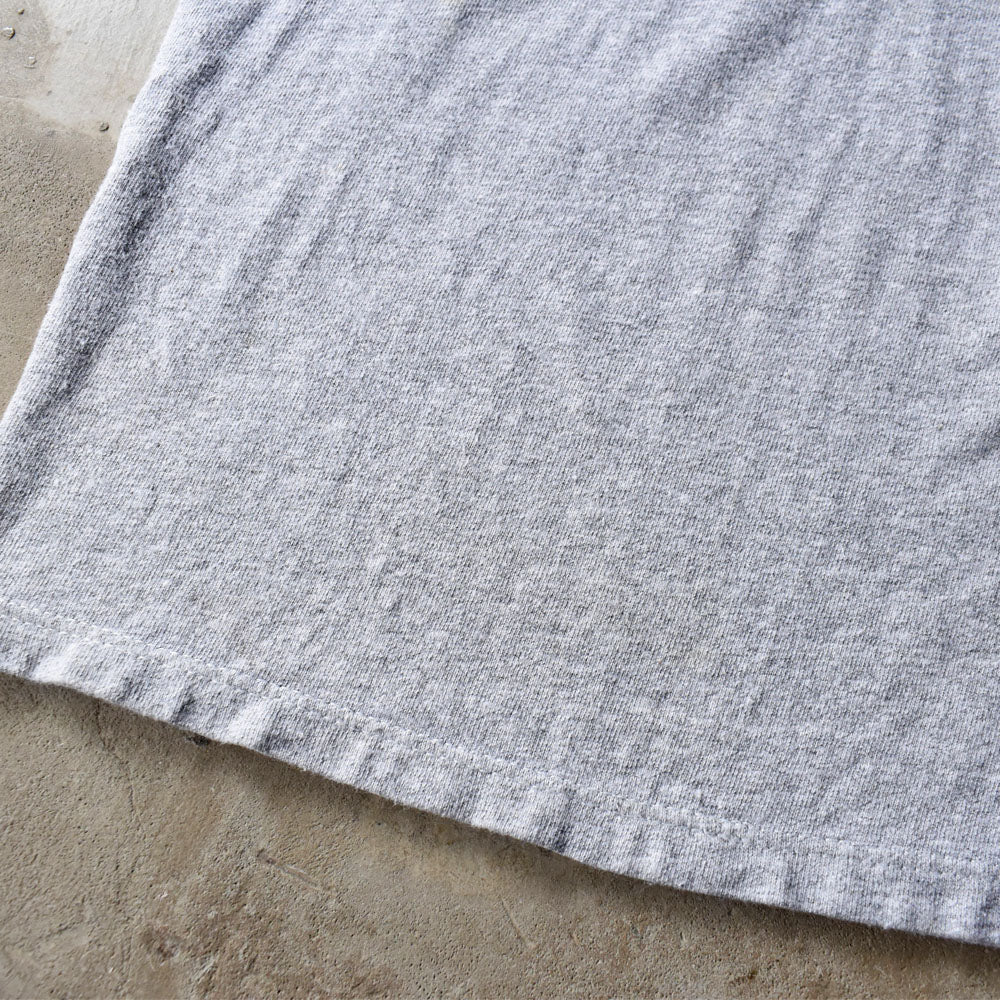 note...90年代チャンピオンTシャツ。霜降りグレーボディに、人気の高いカレッジプリント。タグが欠損していますが、残骸から、恐らく刺繍タグかと。袖シングルステッチと、ディテールや佇まいもヴィンテージらしい1枚。こなれた雰囲気がたまりません。 実寸L相当のグッドサイズ。