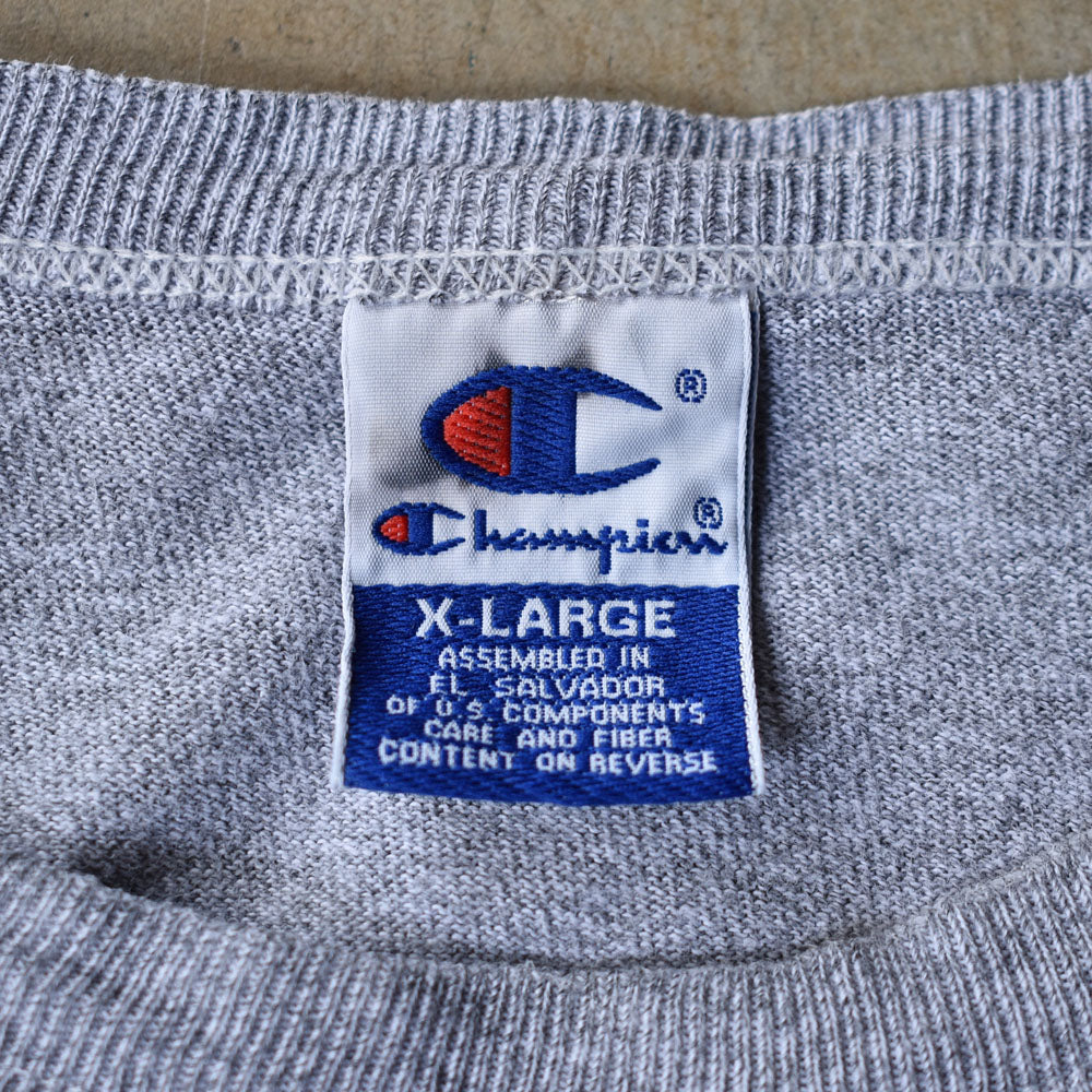 note...アメカジの定番、チャンピオンのカレッジT! 霜降りグレーボディに豪華な3段プリント!ヴィンテージらしい雰囲気が最高ですね。90年代の表記XLサイズ!ピンときたら買いです。
