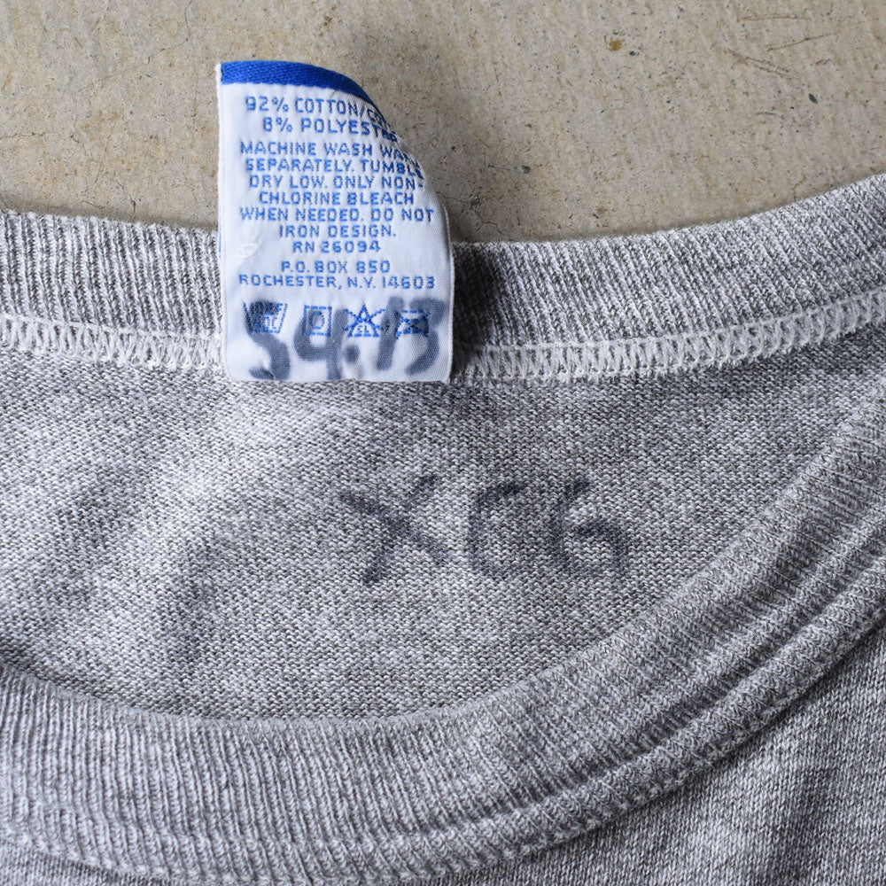 note...90年代USA製のチャンピオンTシャツ。霜降りグレーボディに、人気の高いカレッジプリント。袖シングルステッチと、ディテールや佇まいもヴィンテージらしい1枚。こなれた雰囲気がたまりません。 表記Lサイズ、嬉しいUSA製!