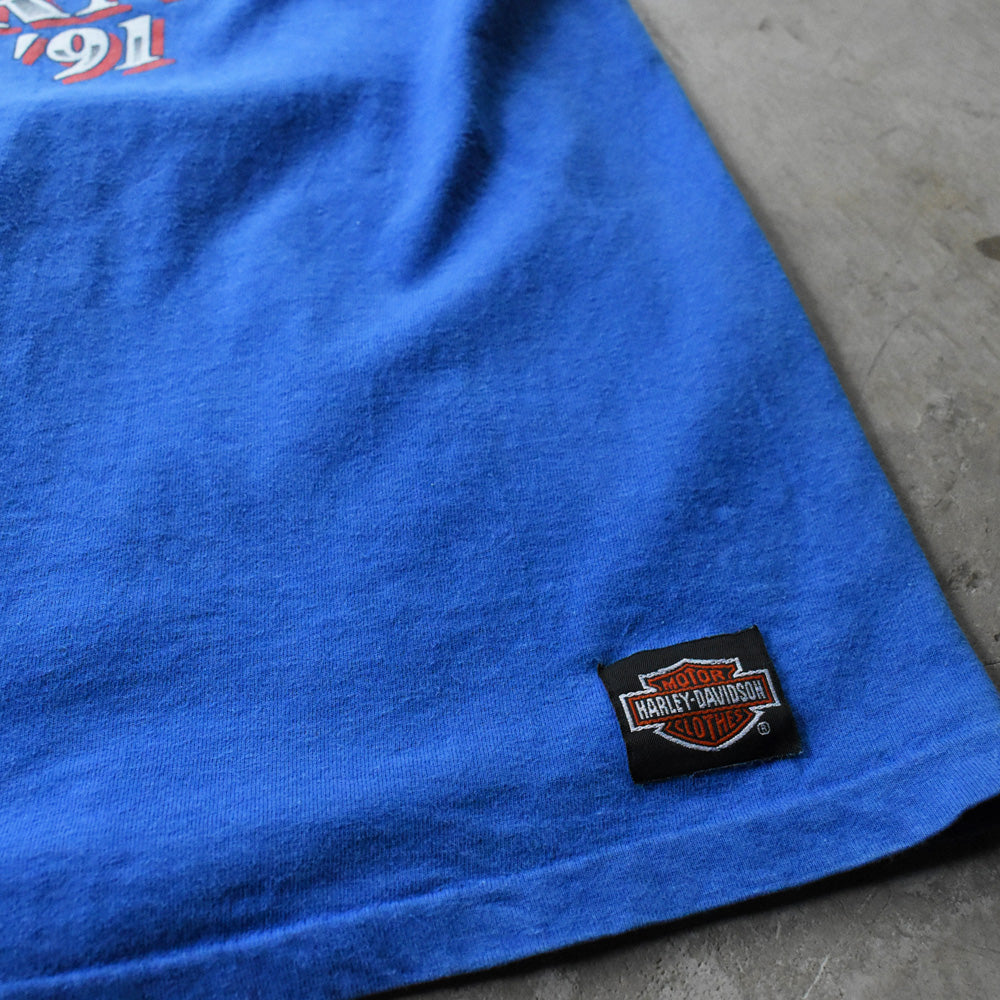 note...1991年開催〈WESTERN RALLY〉を記念した、90年代ハーレーダビッドソンのヴィンテージTシャツ。MADE IN USAのヘインズ製BEEFY-Tボディを使用し、両面に迫力のあるプリントが施された一着です。シングルステッチの仕様や、経年により程よく褪せた発色も抜群の雰囲気。アメリカンバイクカルチャーを象徴する一枚として、コレクションにもオススメ!