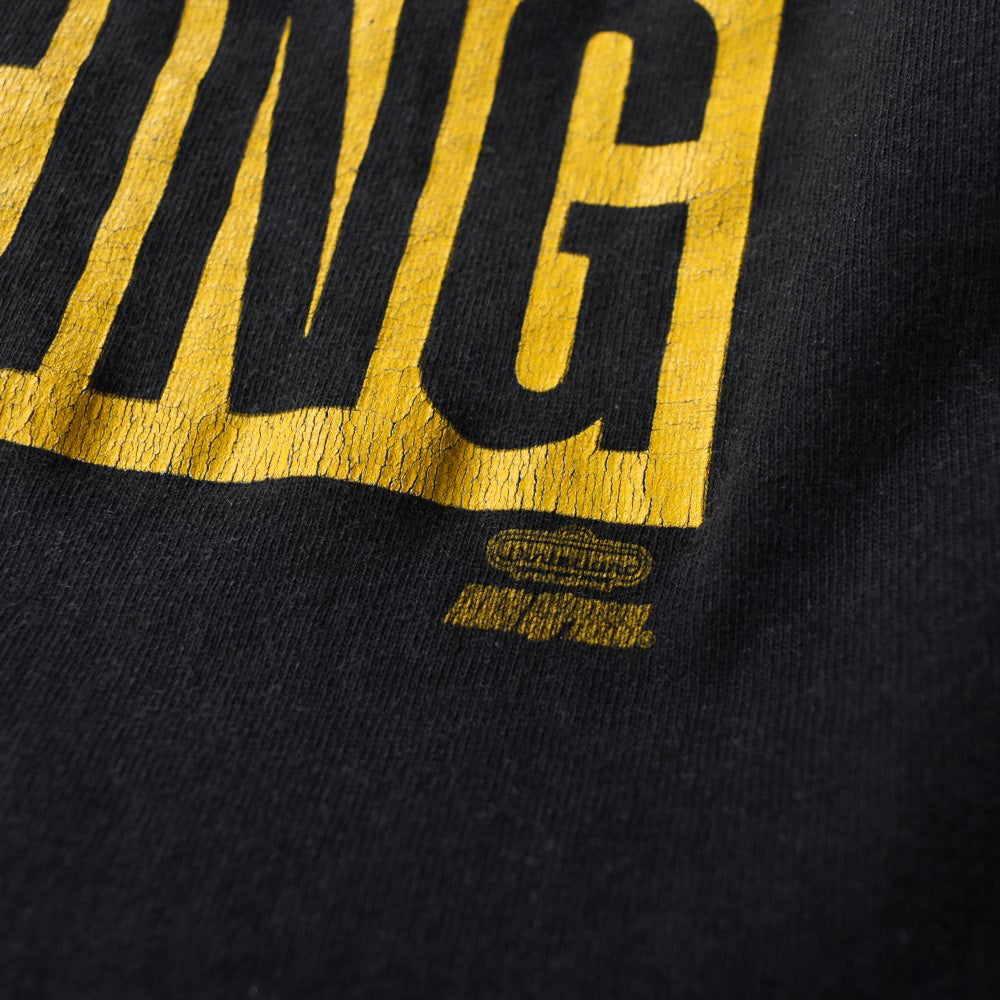 白プリントのひび割れも、90’sヒップホップ特有のポップさをさらに良い感じにしてくれてます。