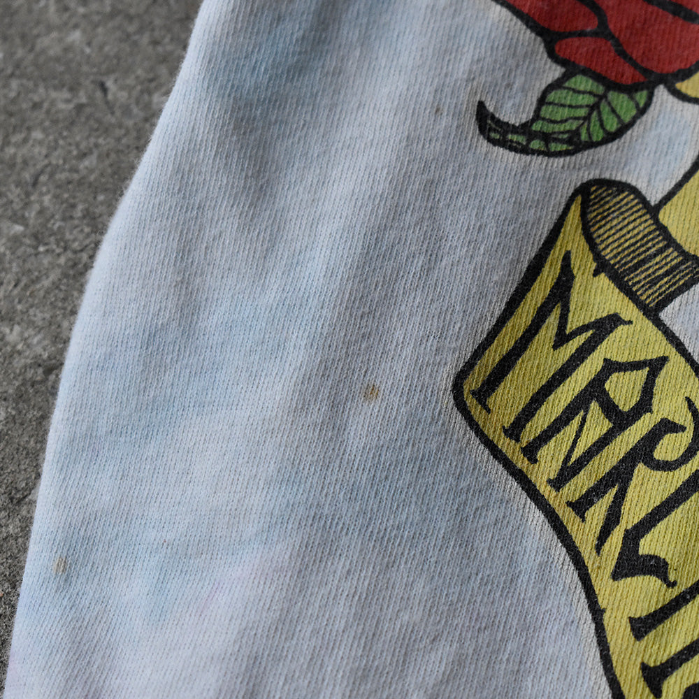 note...USサイケデリック・ロックの象徴、グレイトフル・デッド。タロットグラフィックをモチーフとした“APRIL FOOLS”Tシャツ。幻想的なアートワークが、グレイトフル・デッドを象徴する1枚。ボディは多数のミュージシャン、タイダイカラーを多く手掛ける人気のLIQUID BLUE製。クオリティの高い鮮やかなタイダイカラー。93年コピーライト入り。袖、裾シングルステッチ。音楽、アート、スピリチュアリティ、すべてがミックスされたLIQUID BLUE×グレイトフル・デッドの豪華なTシャツです。