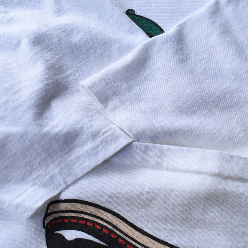 note...1993年コピーライト入り、ルーニー・テューンズのキャラクター「タズ」を大胆に描いたTシャツ。 バックはガールフレンドが登場し、90年代らしいビッグサイズのグラフィックで魅せる1枚です。 当時のUSヒップホップカルチャーをデフォルメしたようなファッションスタイルも見どころ。一種のポップカルチャーアートとして楽しめます。 ボディは袖・裾ともにシングルステッチ仕様のタルテックス製。ヴィンテージらしい作りと風合いを備えています。 カルチャー要素を効かせたいコーディネートにぴったりの主役級アイテムです。