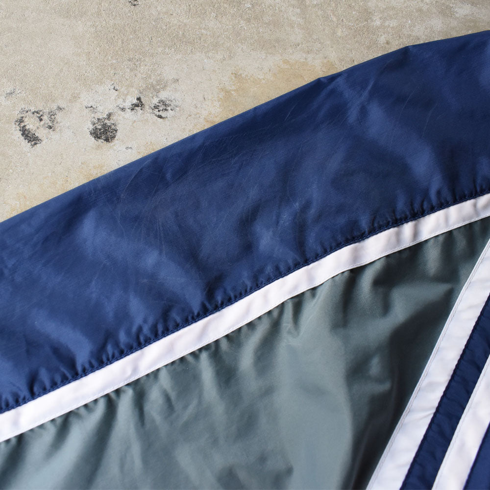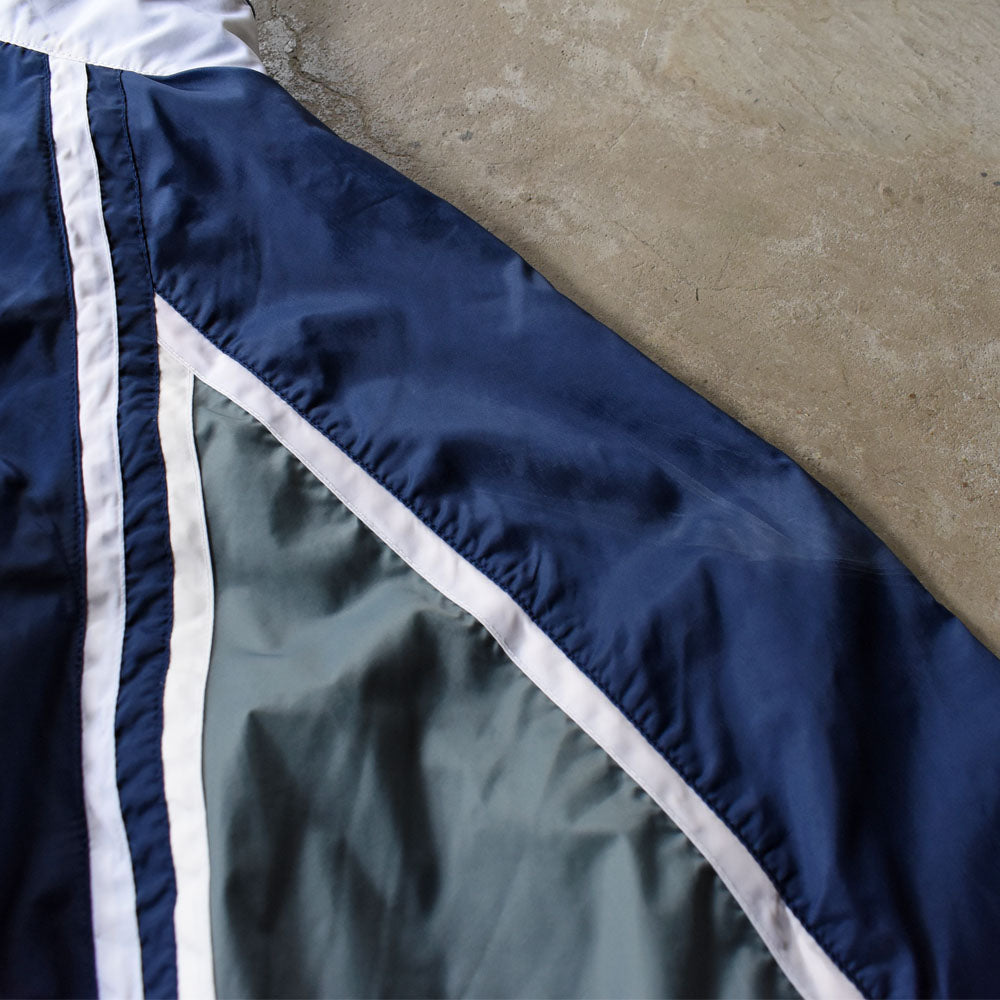 note...90年代NIKEのナイロンジャケット。ネイビーボディを基調とした大胆な切り替えと、90年代ならではの配色センスが光る1着。ストリートにもスポーツにも振れる絶妙なバランス感です。 裏地はメッシュ仕様で、軽やかに羽織れる機能性や表記XLのゆったりとしたシルエットも嬉しいポイント。 古着好きなら1枚は持っておきたい、王道ナイキの名作アウターです。