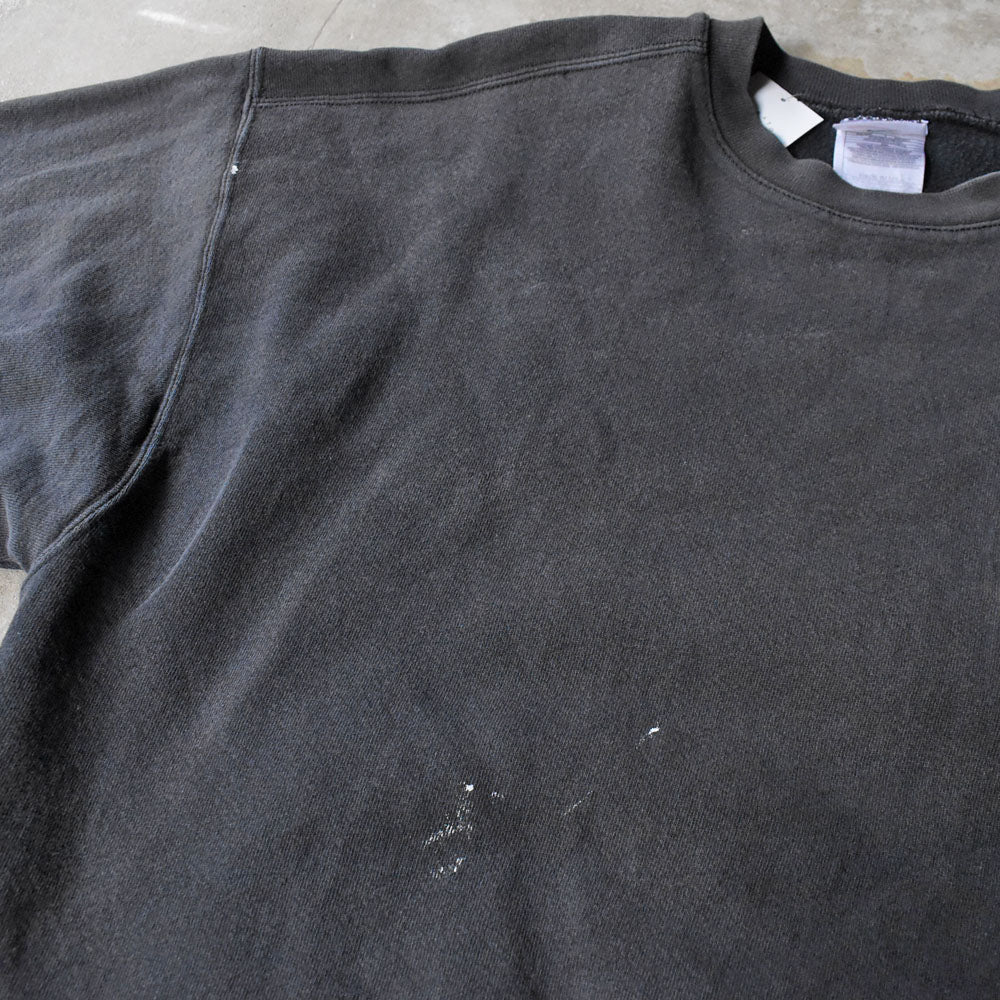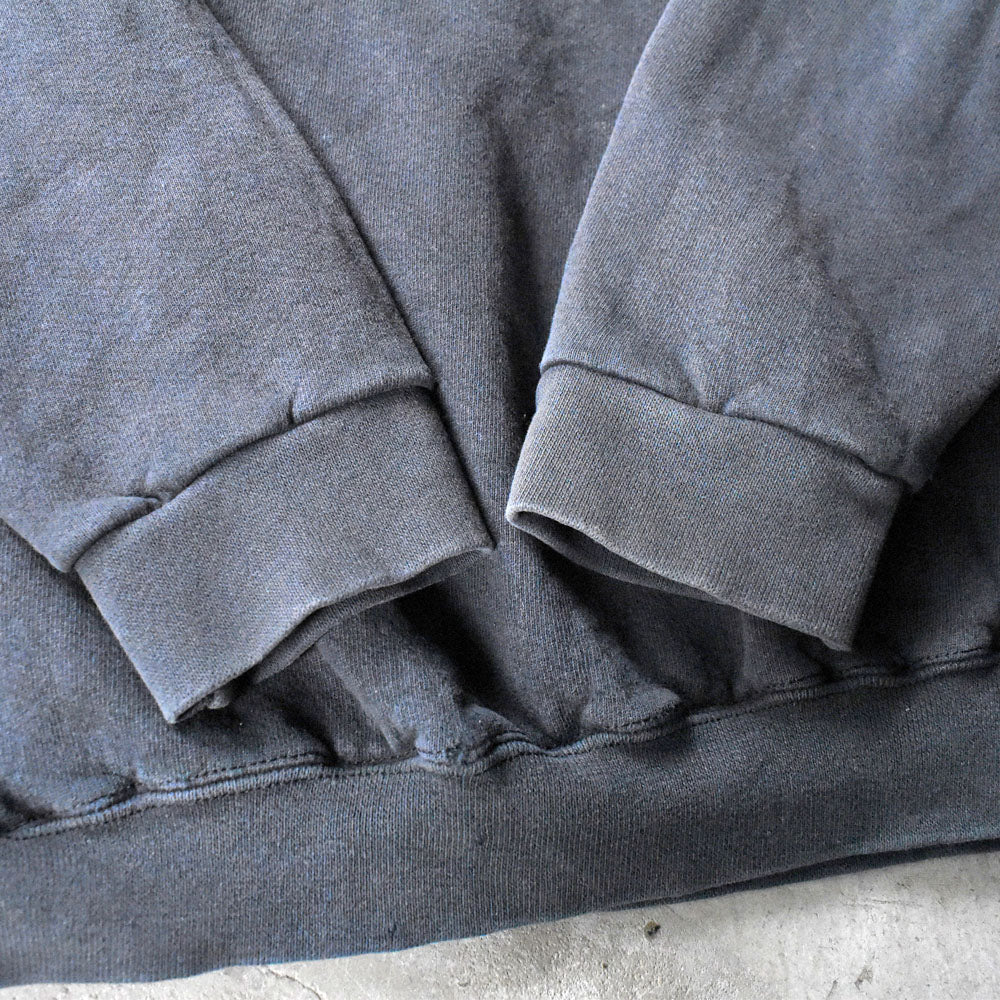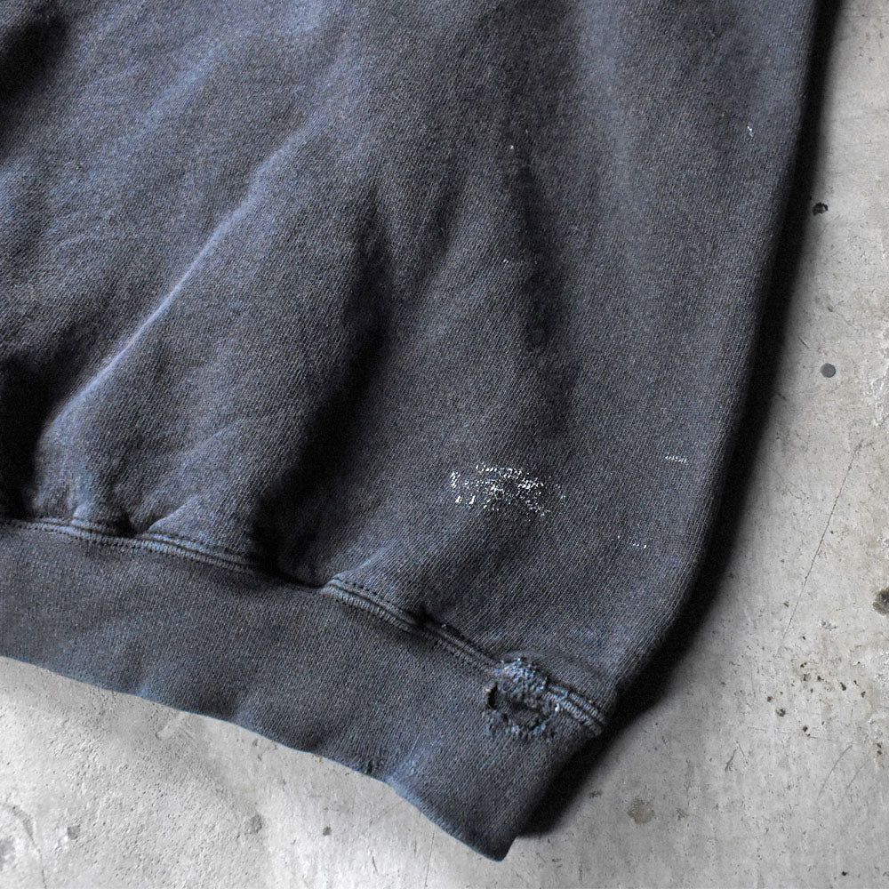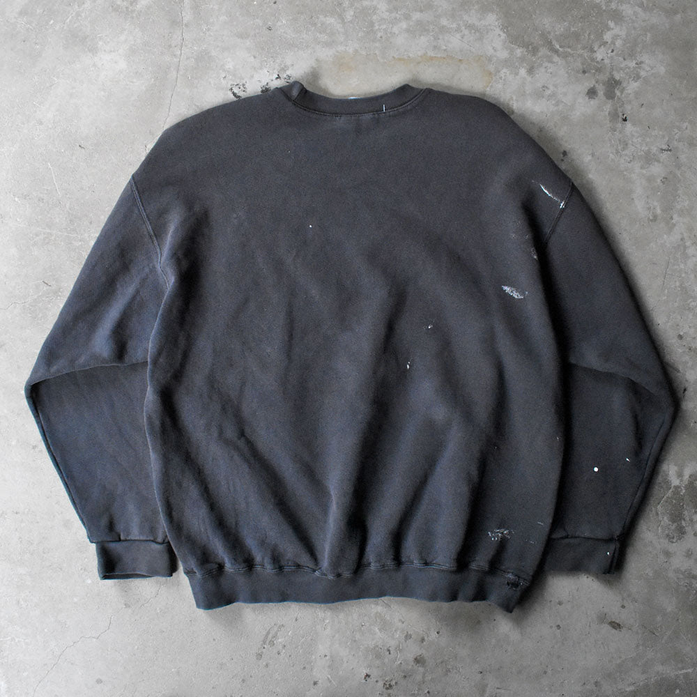 フロントに配された小ぶりなスウッシュ刺繍が、ミニマルでありながら確かな存在感を放つデザイン。黒のボディは長年の着用を経て程よくフェードし、全体に散ったペンキ汚れや細かなスレが、まるでアトリエウェアのような味わいを生み出しています。