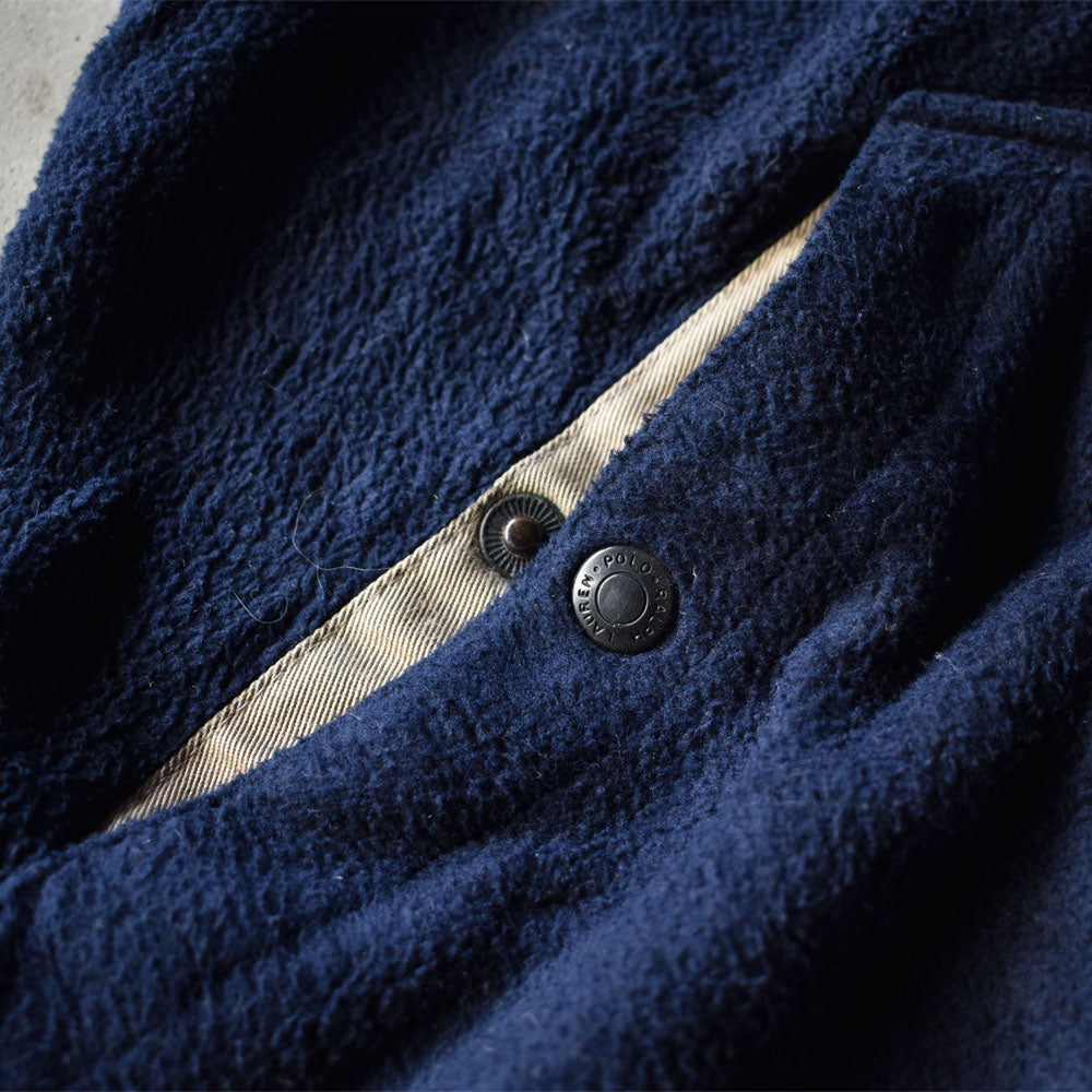 note...USA製ポロ ラルフローレンのフリースジャケット。オーセンティックな一着です。フロントにはポニー刺繍。チンストラップ付きの襟もとにも注目です。ネイビーボディにベージュ裏地もオシャレ! 実寸LくらいのGOODサイズ。