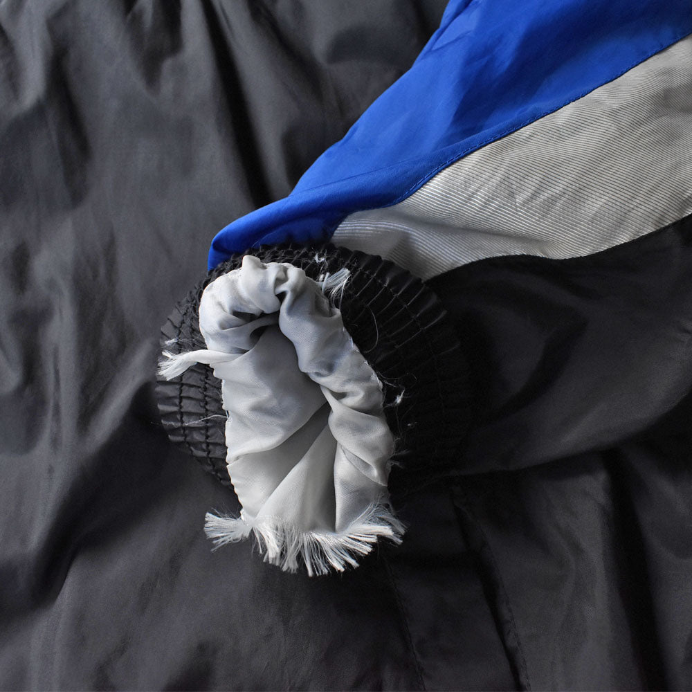 ブラック×ブルーにホワイトを効かせたカラーリングは、90’sブリットポップ期のUKストリートを象徴するような存在感。OasisやBlurがスポーツブランドを日常に取り入れ、音楽とファッションが強く結びついていた時代の空気を思わせます。