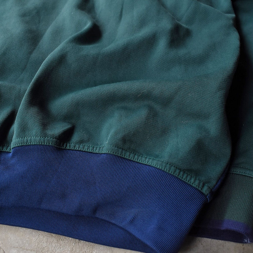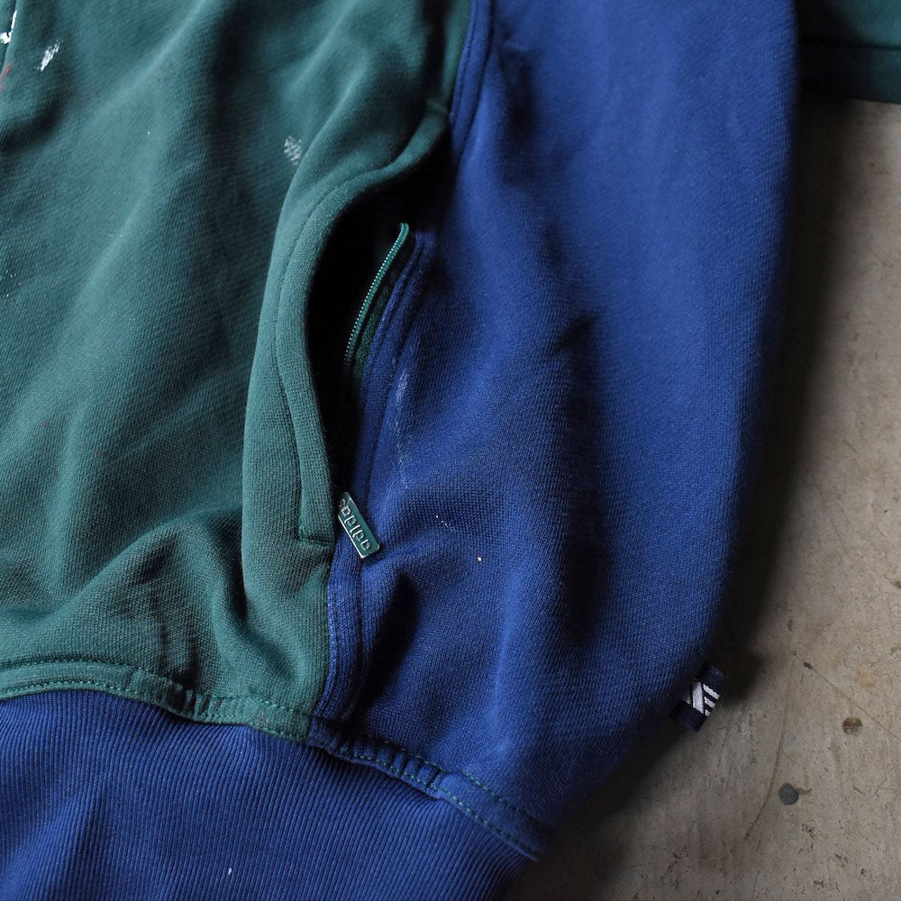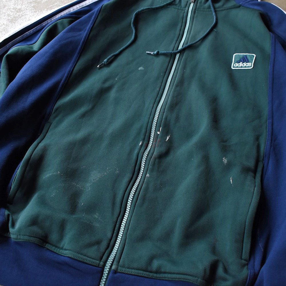 note...深いグリーンとネイビーの切り替えが印象的な、90年代のアディダスフーディトラックジャケット。