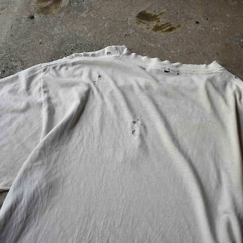 note...人気USコメディアニメ”レンとスティンピー”Tシャツ。ブラックコメディのタッチとUSらしいポップなグラフィック。ボディには激しいダメージのある“ボロ”ですが、まさに雰囲気勝ちの1枚!92年MTVネットワークコピーライト入り。USA製の袖、裾シングルステッチ。ご理解いただける方是非!