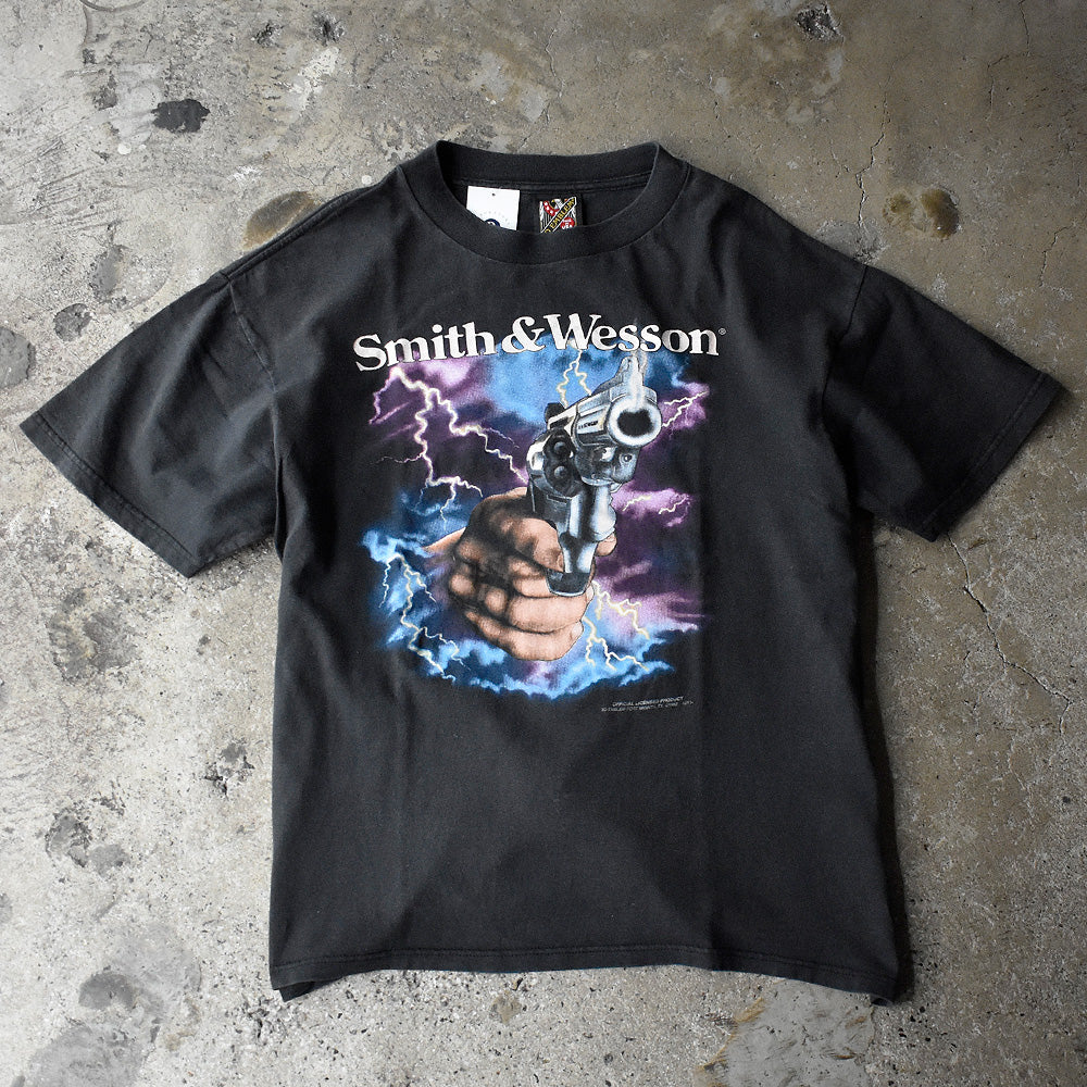 90's 3D EMBLEM “smith&wesson“ Thunder×Gun! Tシャツ USA製 250513H