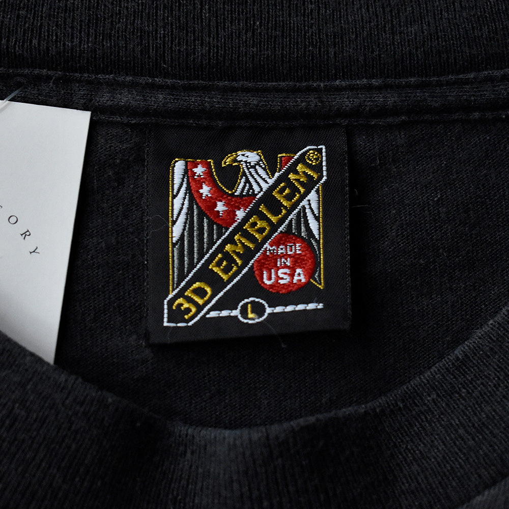 note...3D EMBLEM×アメリカの銃器メーカー“smith&wesson“Tシャツ。フロントに入るサンダー×銃のナイスグラフィック!バックにはイーグルがプリントされています。ワイルドで迫力のある雰囲気。タグは3D EMBLEMのUSA製、L表記。92年コピーライト入りです。