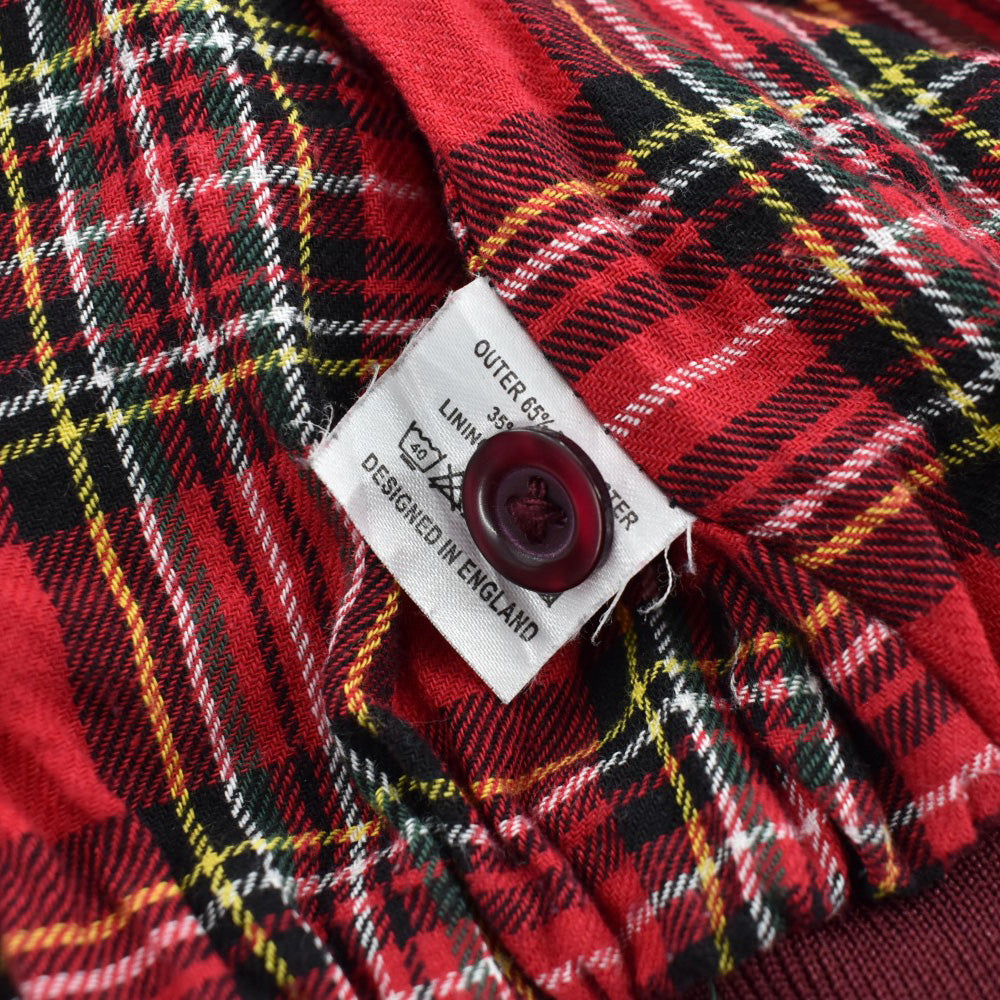その落ち着いた色彩の内側には、ハリントンジャケットの魂とも言える鮮やかなタータンチェックの裏地が忍ばされている。