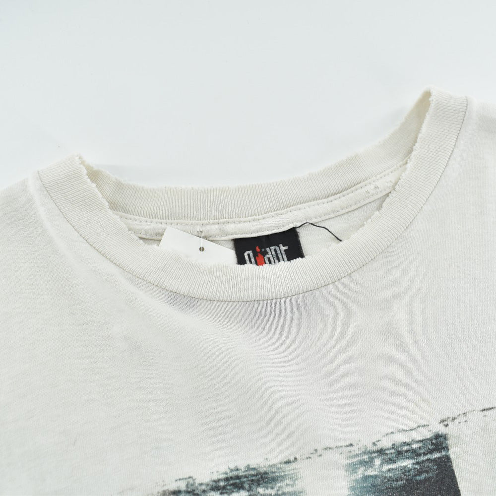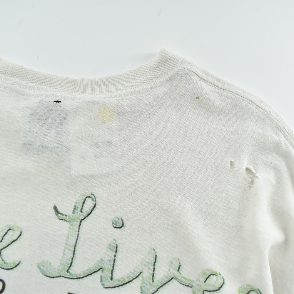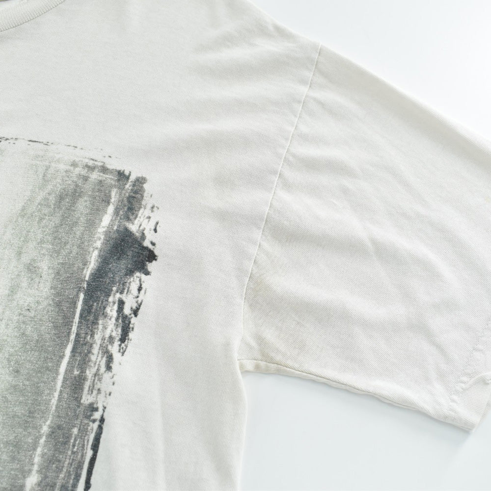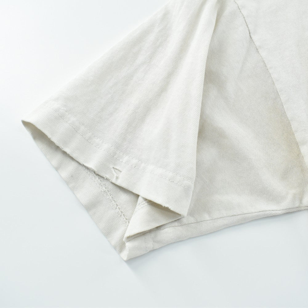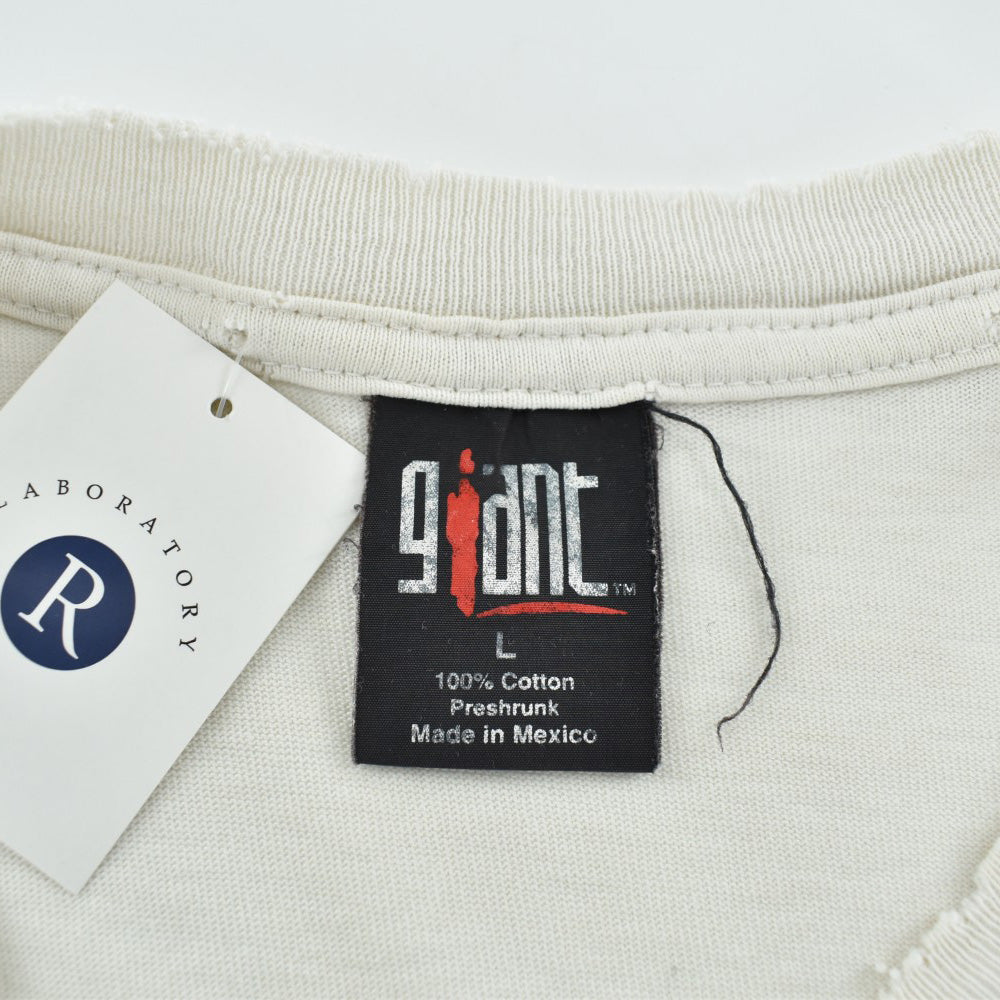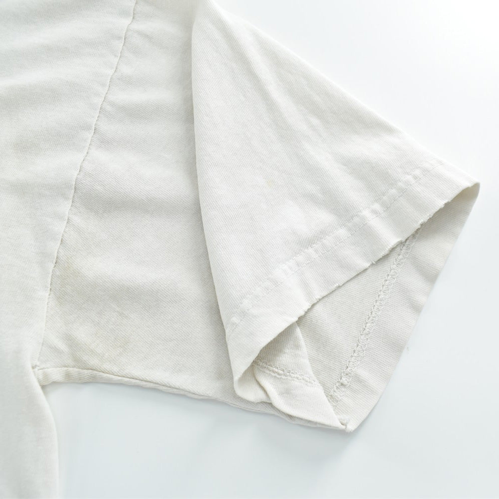 ホワイトのボディは年月を経て柔らかなオフホワイトへと変化し、首元のダメージや細かな擦れが、この一着が刻んできた時間の厚みをそのまま体現しています。