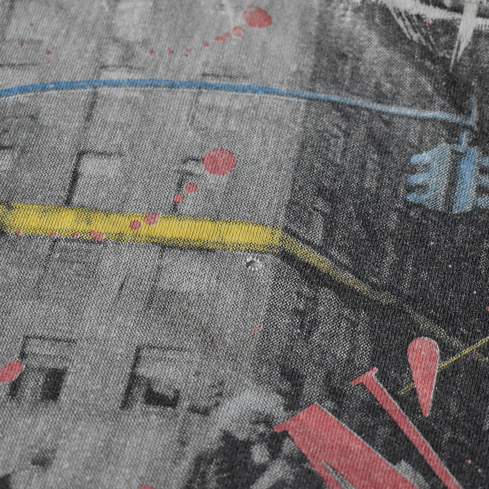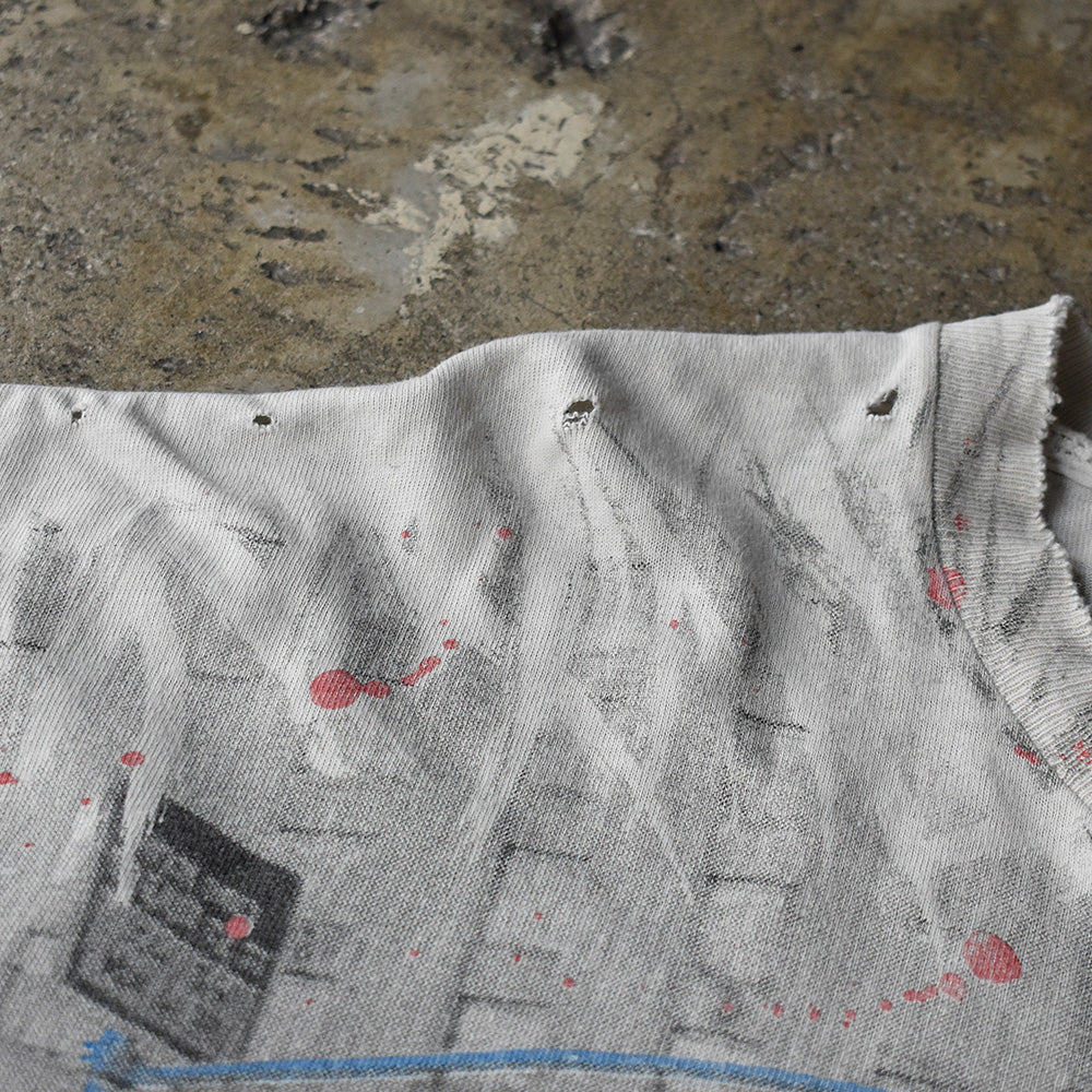 note...世界的人気ロックバンド、ガンズ・アンド・ローゼズ。91年リリースアルバム、Use Your Illusion I収録の“DEAD HORSE” Tシャツ。DEAD HORSE (LP Version)で使用されたアートワークが、ボディ全面に入る豪華AOP!(オールオーバープリント)。圧倒的な存在感を放つ1枚。92年コピーライト入り。タグはWILD OATSのXL表記。USA製。ガンズTシャツの中でも希少性の高いスペシャルピースです。