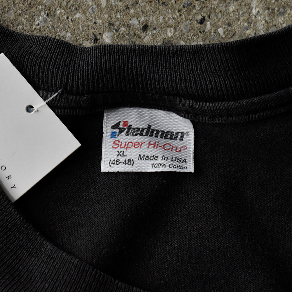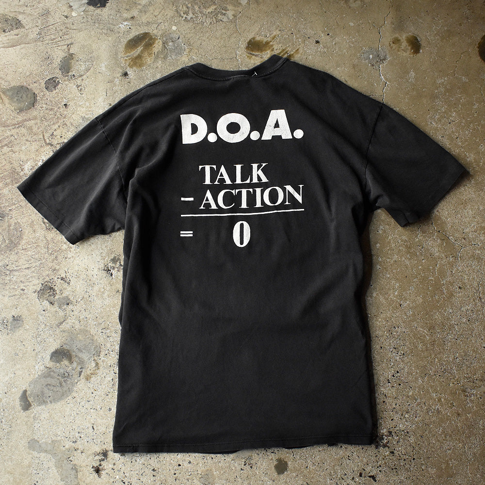 note...カナダのハードコア・パンクバンド、D.O.A.。 90年にリリースされた“Murder“Tシャツ。フロントにスカル×ピストルのジャケットデザイン。バックにはバンドのスローガン、“TALK - ACTION = 0“がプリントされています。タグはステッドマンのXL表記。USA製。年々玉数も減ってきた、ヴィンテージ、ハード・コアパンクTシャツ。コレクションピースの1枚です。