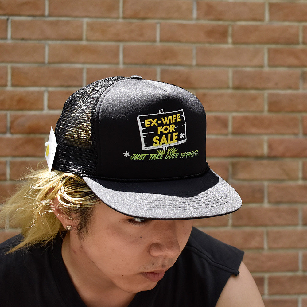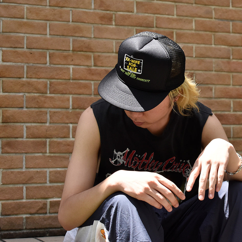 note...デッドストックボディ、"EX-WIFE FOR SALE”(元妻売ります))メッセージプリント、メッシュキャップ。アメリカンユーモア全開のアイテムです!
