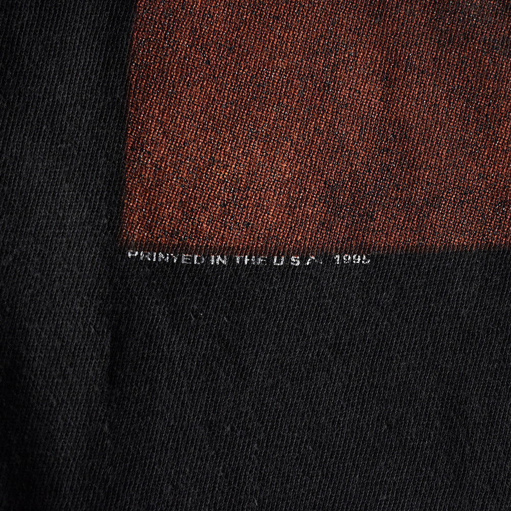note..活動時期3年という短い期間ながら、90年代のレゲエシーンにて最も重要なミュージシャン、ガーネット・シルク。フロントにガーネットのフェイス、バックには“MAMA AFRICA”プリントのRap Teeタイプ、ガーネット・シルクTシャツ!ブラックボディにラスターカラーの配色、前後デカデカと入るプリントの配置も素晴らしい。95年コピーライト入り。袖、裾シングルステッチ。古着市場滅多に出回る事のないスペシャルなガーネット・シルクTシャツ。当店初入荷の大変希少な一枚です。