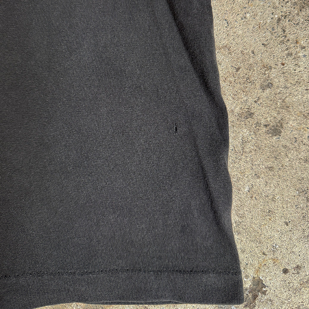 note...90年代のハーレーT。“BIKEWEEK 1995”モデルの陽気な波乗りバイカープリント! バックにはイーグルをON。夏のスタイルにも、もってこいな両面仕様です。表記XLですが、実寸2XLほどのゆったりシルエット。希少なUSA製に、袖・裾ともにシングルです。フェードしたブラックボディがムード抜群!