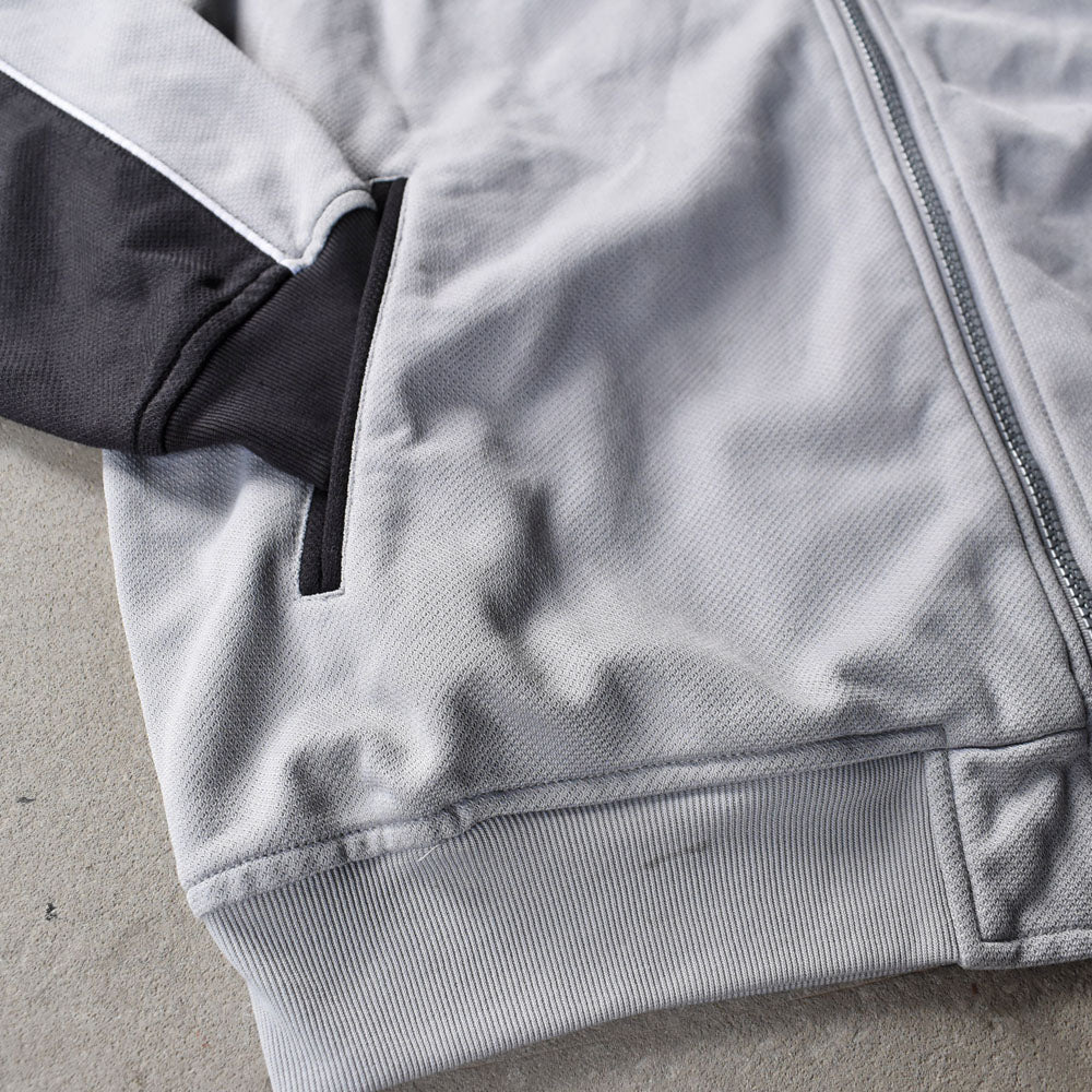 トラックジャケットをただのスポーツウェアとしてではなく、カルチャーの延長線上に捉えていた時代の空気を閉じ込めたような一枚です。