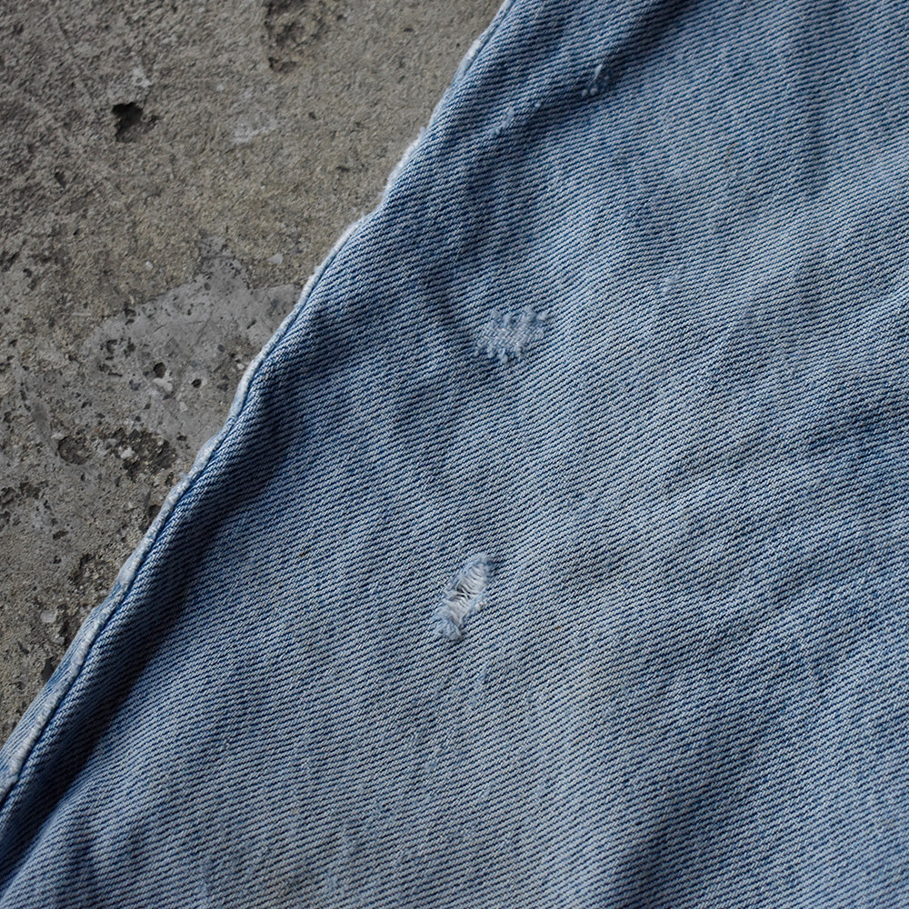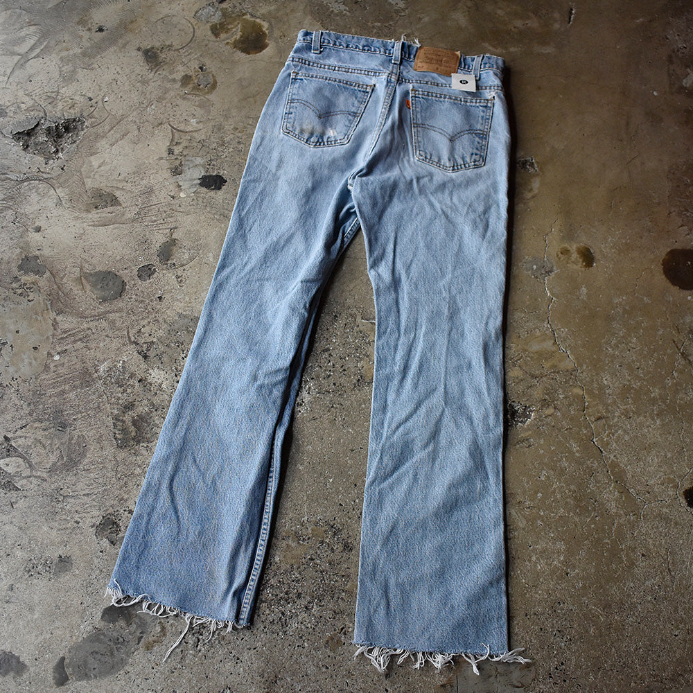 note...Levi's ブーツカットシルエット517デニムパンツ。ボタン裏刻印575の90's USA製、オレンジタブ。色落ちしたインディゴが雰囲気抜群のダメージデニム。実寸ウエストサイズは31インチ位。フルシーズン大活躍の1本です。