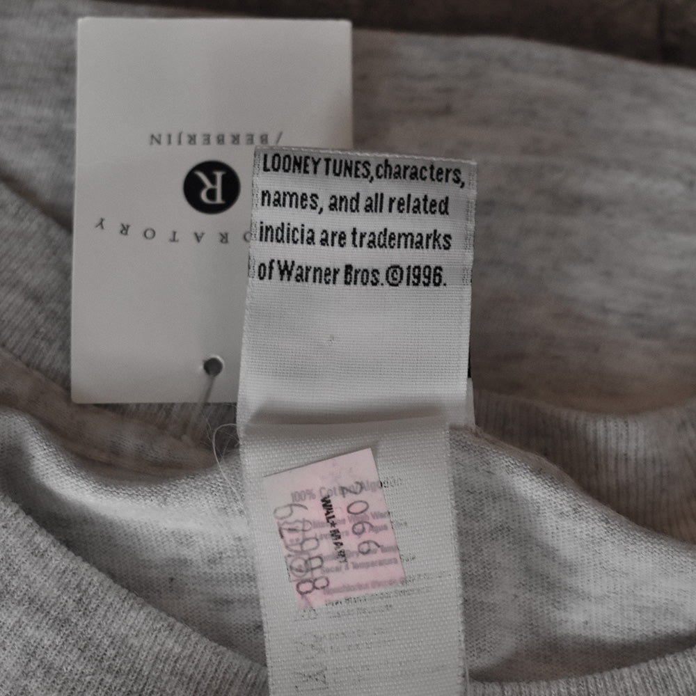 note...USアニメ、ルーニーテューンズ。人気キャラクターのマービン・ザ・マーシャンTシャツ。フロントにデカデカと入る迫力のあるデザイン。ゴールドのグラデーションプリントカラーも洒落た一枚!96年コピーライト入り。タグはルーニータグの袖、裾シングルステッチ。海外でも評価の高いキャラクターTシャツ。ルーニーモノとなると尚更です。