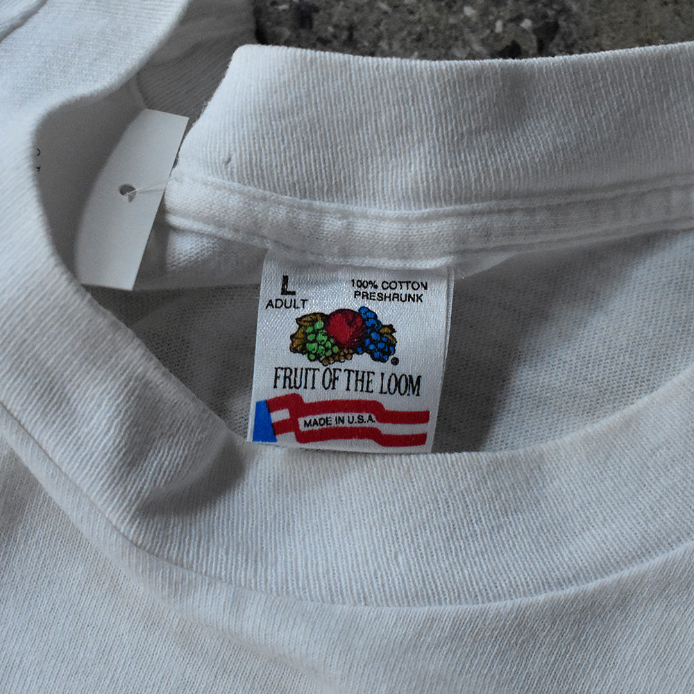 note...Looney Tunesの人気キャラクター、タズマニアンデビルとNFLチーム“Minnesota Vikings“のコラボレーションTシャツ。ポップで遊び心溢れるグラフィックが魅力的。92年ワーナーブラザースとNFLのコピーライト入り。タグはフルーツオブザルームのL表記。USA製。ストリートスタイルの主役になる1枚です!