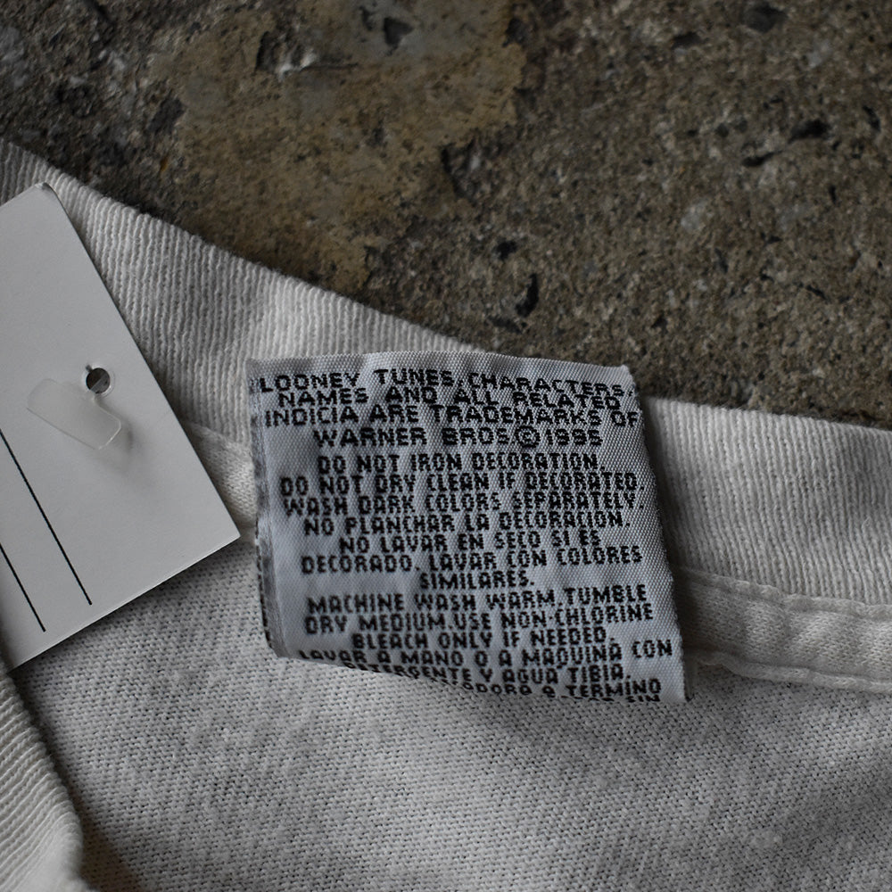 note...USアニメ、ルーニー・テューンズ。人気キャラクター、タズマニアンデビル。フロントに大きく入るタズ。両袖には “NO COMMENT!のメッセージプリント。ユニークなグラフィックセンスが、まさにルーニー・テューンズらしいポップで皮肉の効いた1枚!しかもレアなロングスリーブボディ!95年コピーライト入り。USA製。サイズはXL表記です。