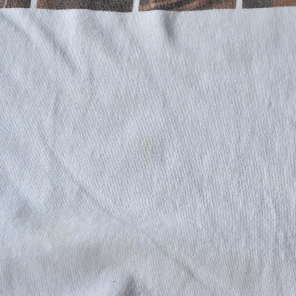 note...90年代後半を代表するUSボーイズグループNSYNC。98年リリースのデビューアルバム“NSYNC“Tシャツ。フロントに5人のメンバーが並ぶジャケットフォトプリント。薄っすらとコピーライトも残っています。タグはウィンターランドのXL表記。ポップスとストリートをクロスオーバーさせたNSYNC。ファッションピースの1枚です。