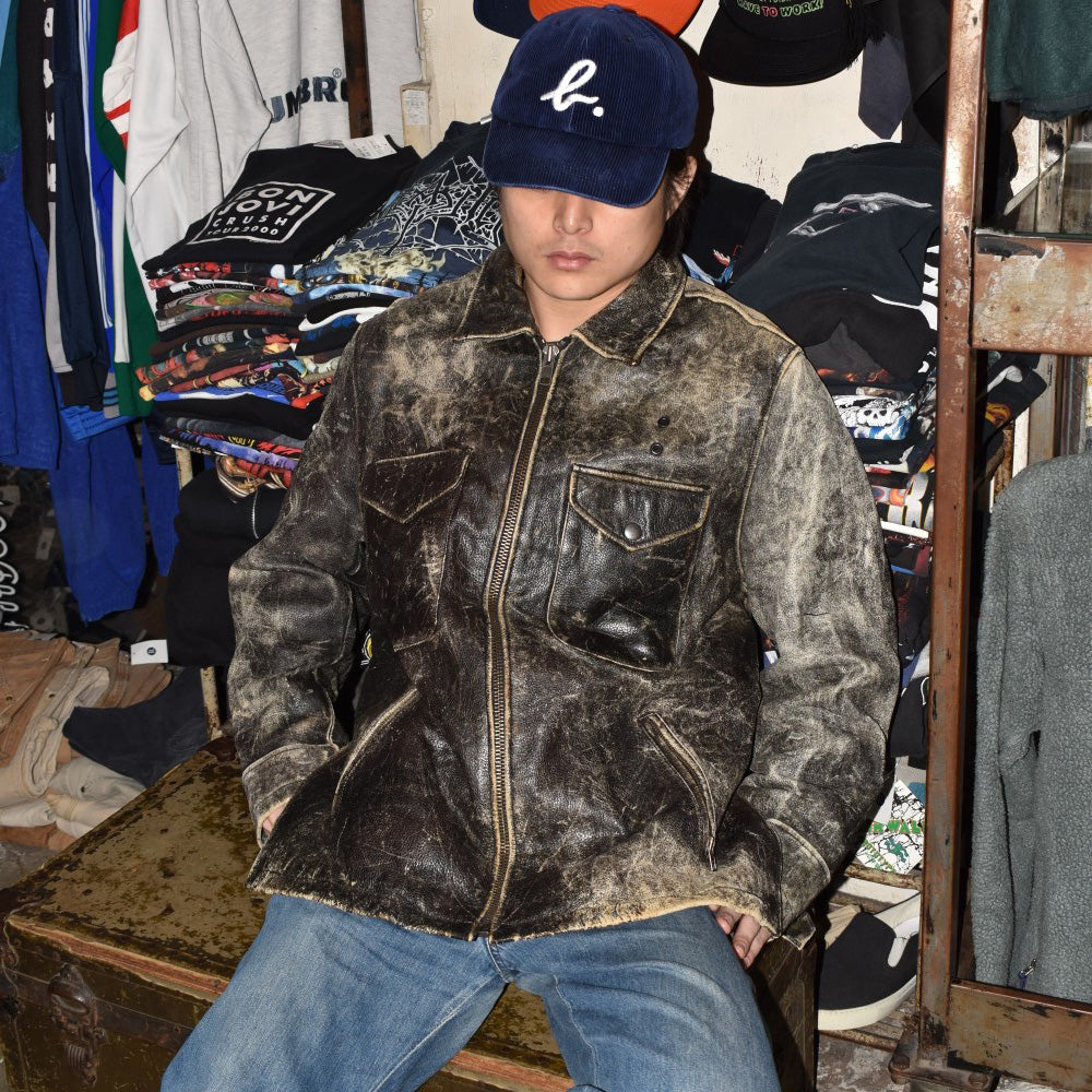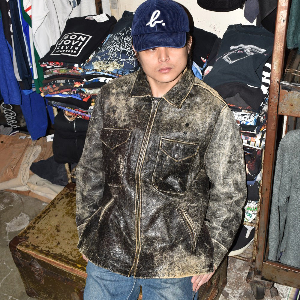 肩や袖のアタリ、ポケットフラップの縁の擦れ、その一つひとつがこのレザーの生命線を描いています。
