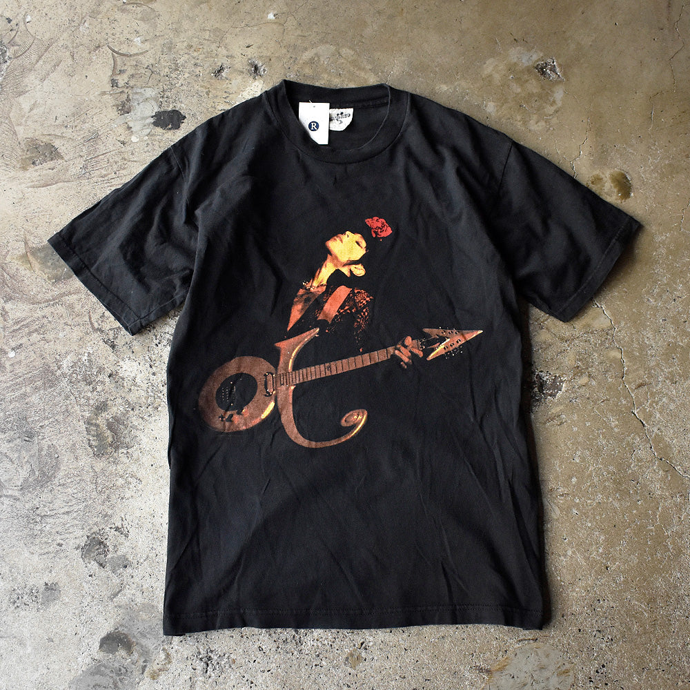 note...US R&B/ソウル・ファンクミュージシャン、プリンス。ギターを持った美しいプリンスのフォトTシャツ。圧巻のビジュアルとバックには控えめに入るロゴプリントが映える、バランスの取れたデザイン。おそらく当時のツアーモノでしょうか。95年コピーライト入り。タグはCRONIESのL表記。USA製。コンディションも特に問題ありません。世界中のファンから愛され続ける伝説のアーティスト、プリンス。おさえておきたい1枚です。