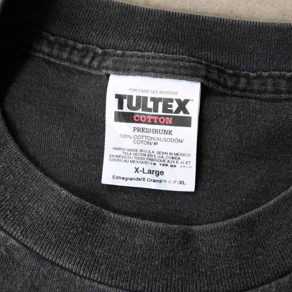 note...アメリカンなバイカーテイスト漂う一枚。星条旗&スカルのカウボーイが主役のフロントに、クラブ名とアイコンが並ぶバックプリントも印象的。さらに、Tultex製ボディのフェード感が雰囲気を高めています!US企画・メキシコ製のXLサイズで、ゆったりとしたサイジングも今の気分にぴったり。